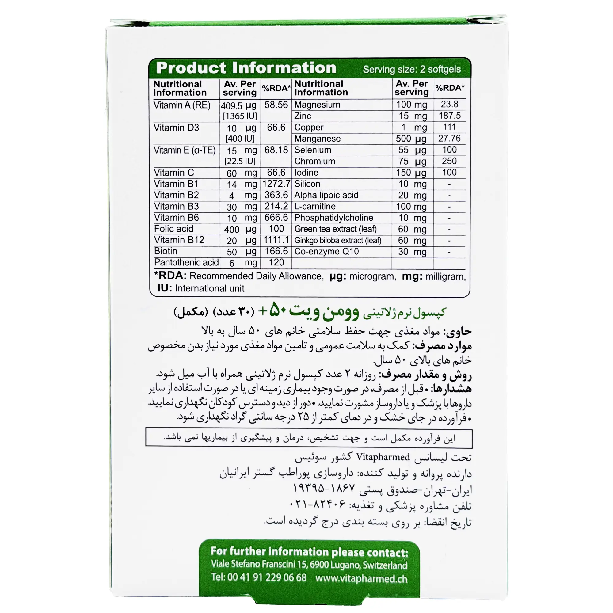 کپسول وومیناویت بانوان 50+ سال ویواتیون - 30 عددی