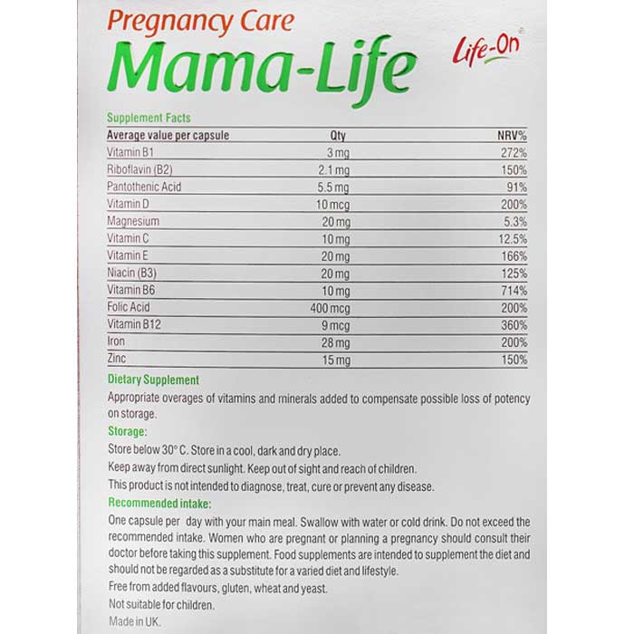 ماما لایف مکمل بارداری مخصوص خانمهایی که قصد دارند در آینده نزدیک باردار شوند و باید قبل از شروع بارداری ذخایر ریزمغذیهای خود را کامل نمایند. استفاده از یک رژیم غذایی متعادل همراه با مصرف مکملهای مولتی ویتامین و مواد معدنی مورد نیاز است.