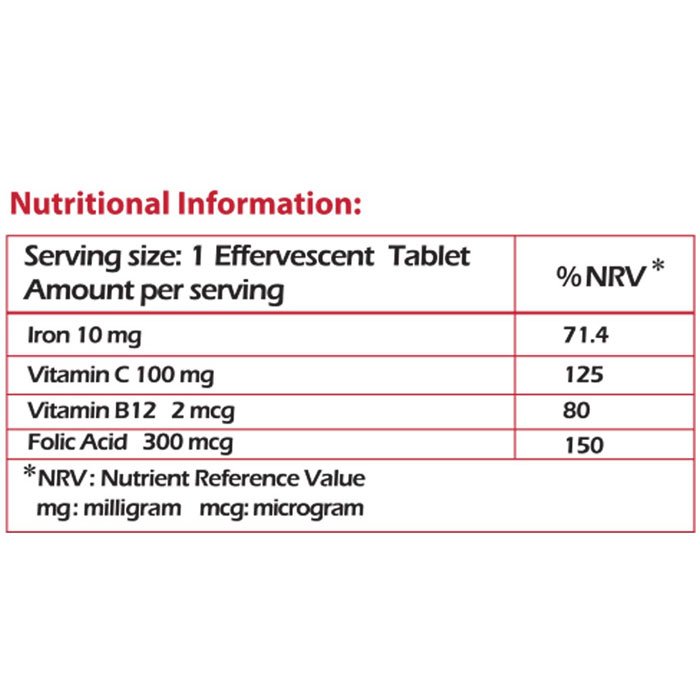 قرص جوشان حاوی آهن ، اسید فولیک، ویتامین B12، ویتامین ث، با طعم دلپذیر پرتقال