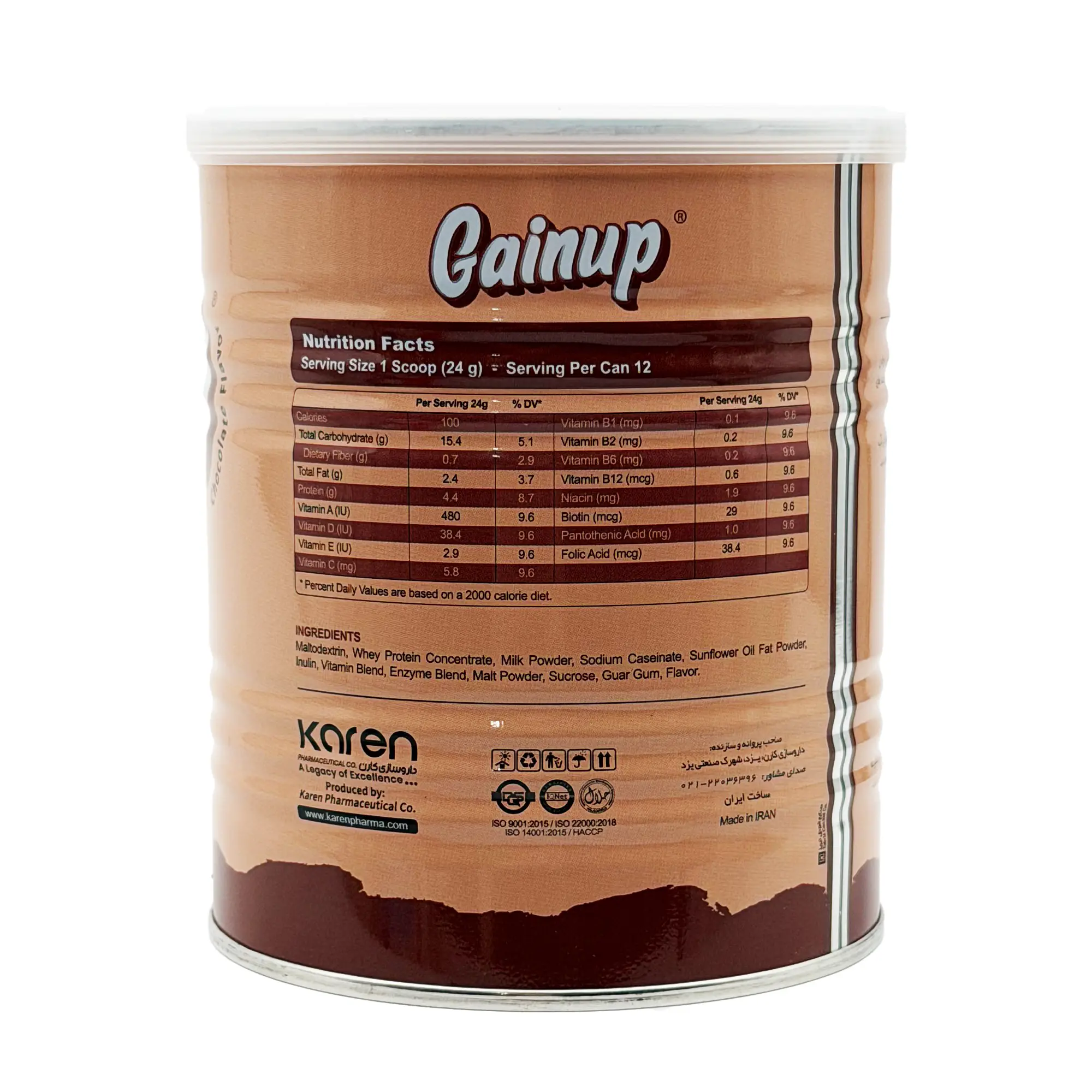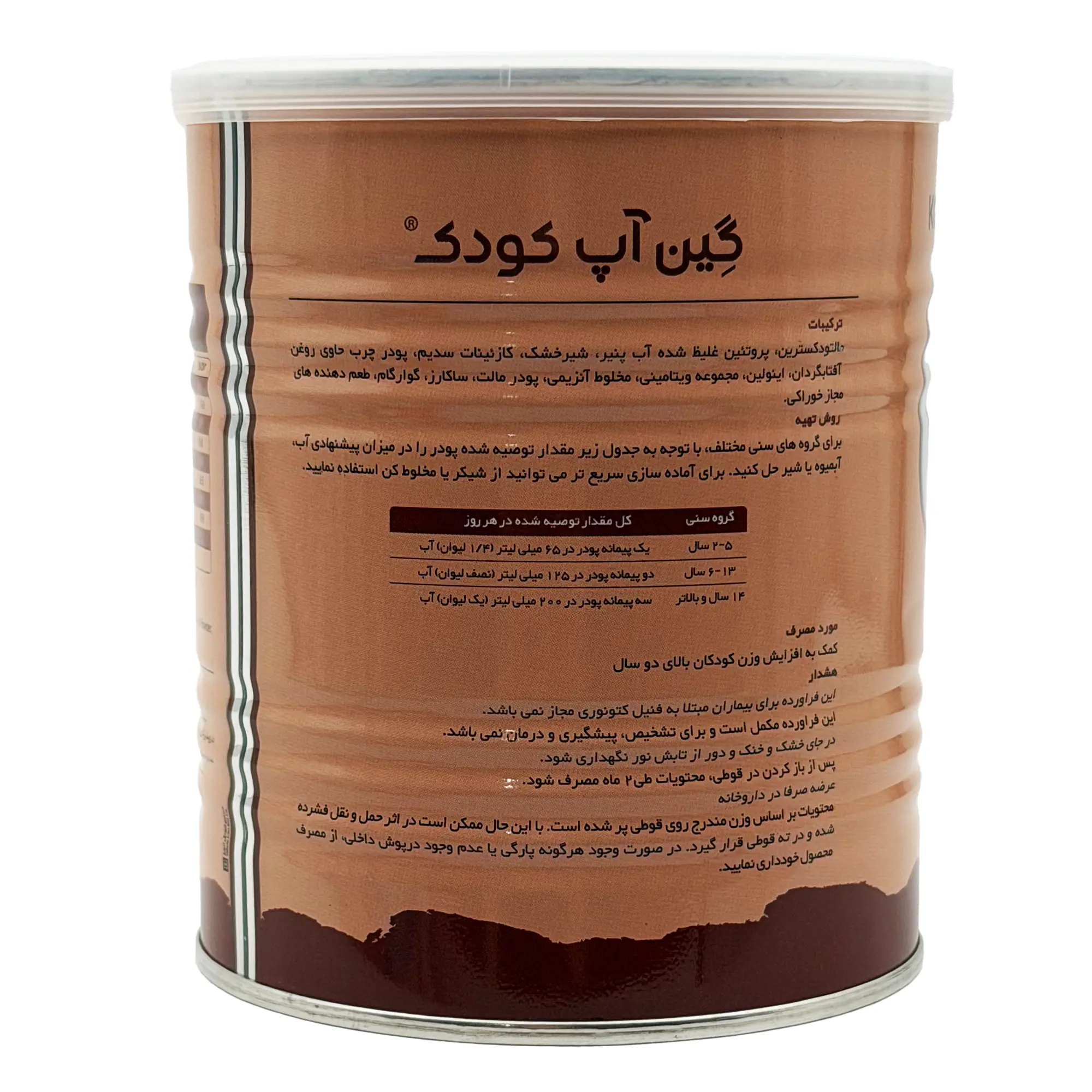مکمل غذایی کودکان گین آپ کارن حاوی کربوهیدراتهای پیچیده، مخلوطی از پروتئینهای شیر، پروتئین آب پنیر (Whey)، مجموعه آنزیمی برای هضم و جذب بهتر پروتئین و همچنین 12 نوع ویتامین بوده و به تامین انرژی روزانه کودکان کمک کرده و باعث افزایش وزن و قد آنها میشود.