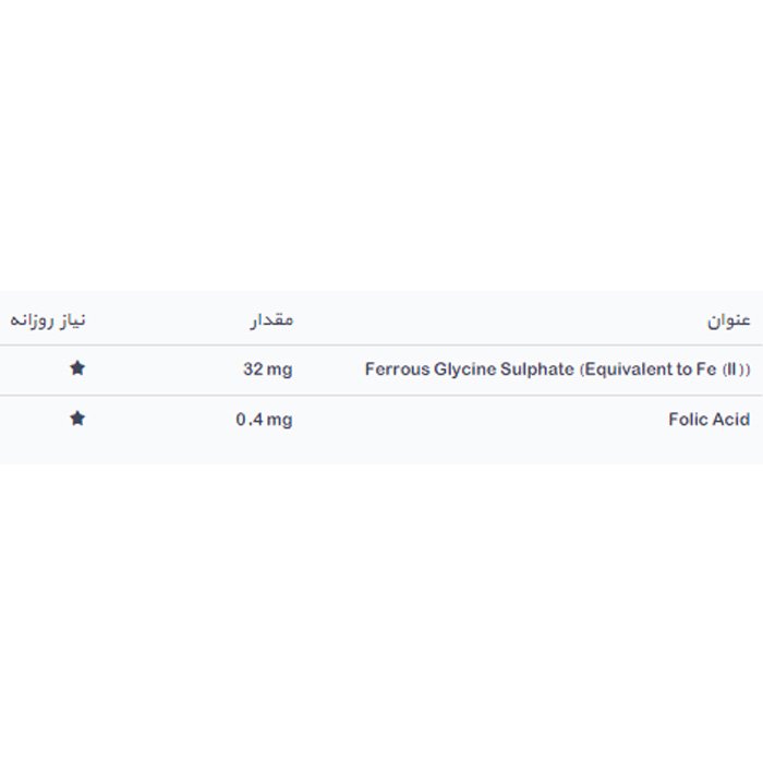 حاوی فروس گلایسین سولفات و اسید فولیک