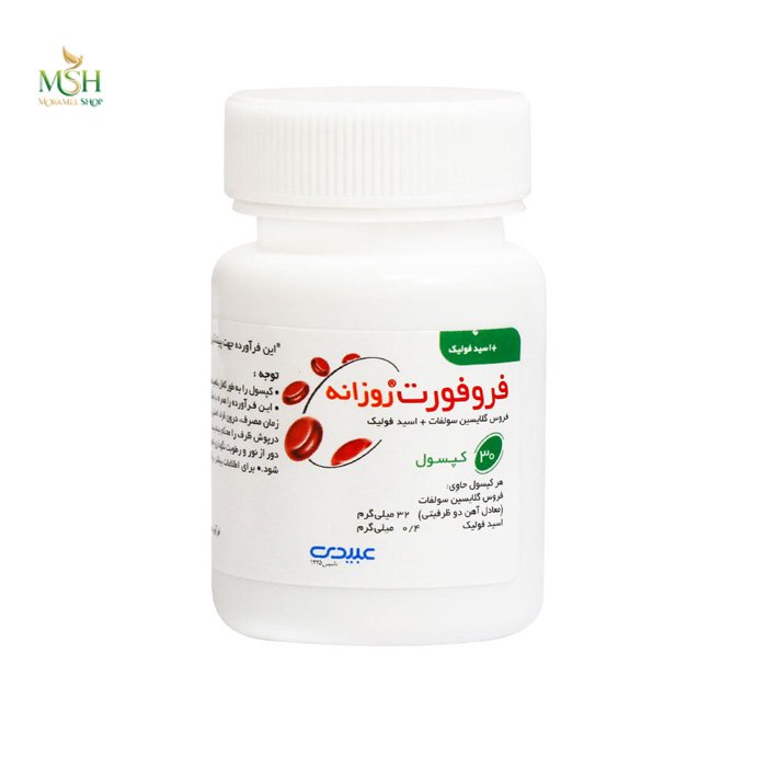 کپسول فروفورت روزانه عبیدی به صورت کپسولهای خوراکی حاوی پلت انتریک کوتد فروس گلایسین سولفات است. از آنجایی که کم خونی فقر آهن از مشکلات جدی است که بیشتر افراد جامعه مخصوصا کودکان و زنان با آن رو به رو هستند، باید دنبال راهکاری برای رفع آن بود. کم خونی سبب بی حالی و بی حوصلگی در افراد شده و انرژی روزانه را کم میکند. کپسول فروفورت عبیدی یکی از مکملهای مناسب برای درمان کم خونی و دارای آهن کافی برای بدن است و کمترین عوارض گوارشی را دارد.