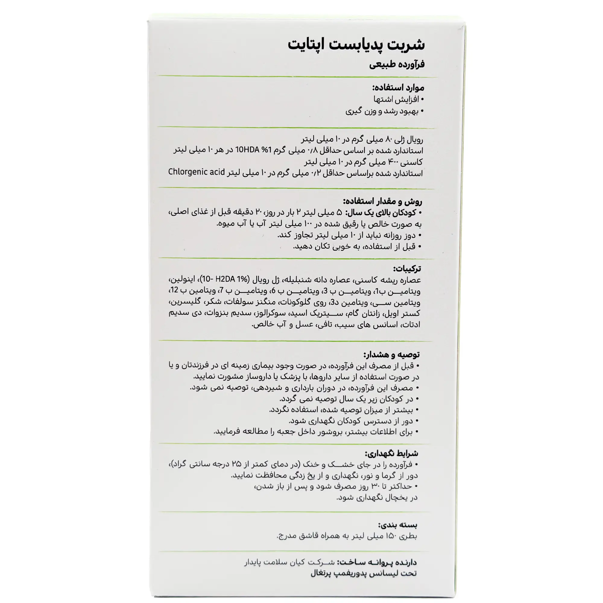 شربت اپتایت پدیابست - 150 میلی لیتر