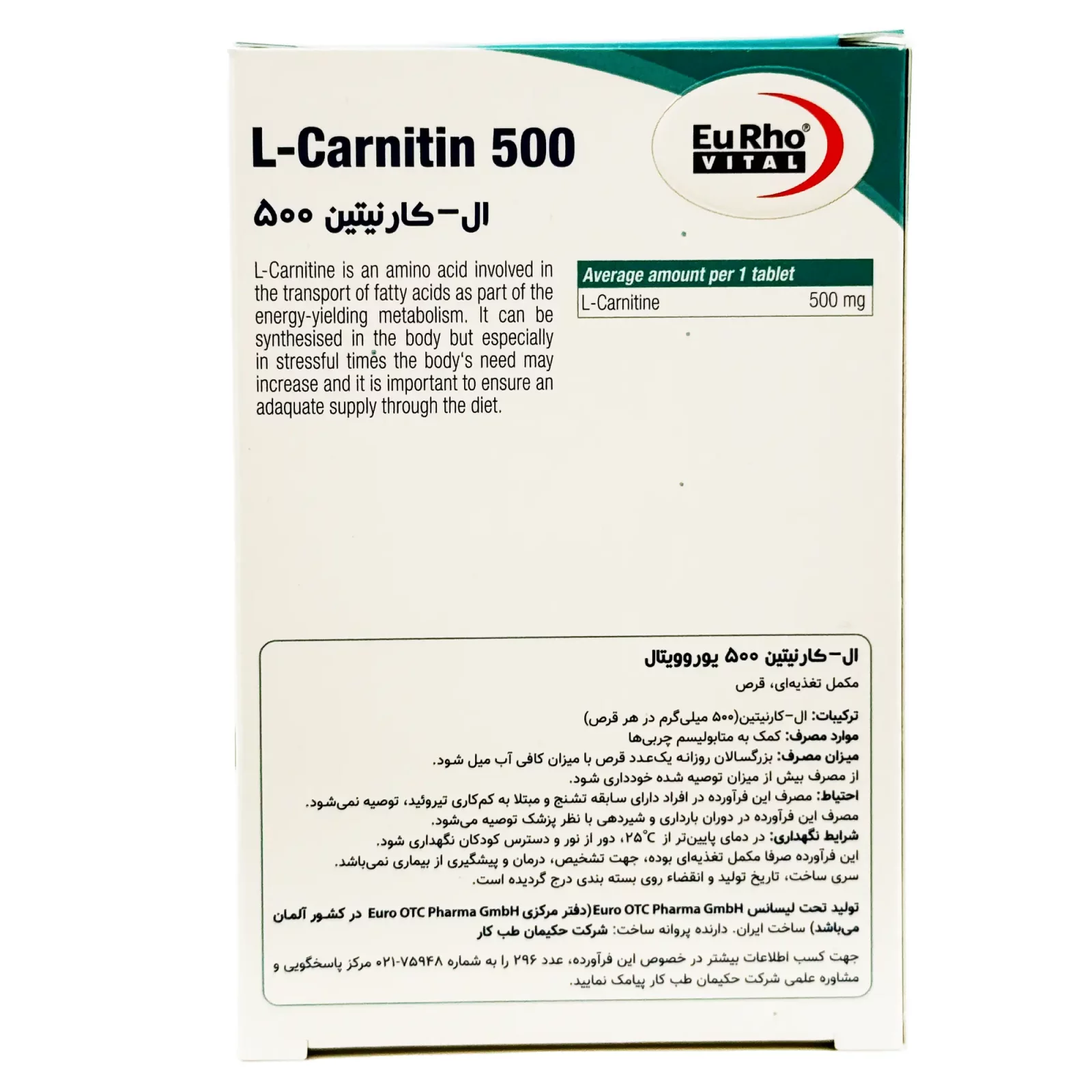 قرص ال کارنیتین 500 یوروویتال - 60 عددی