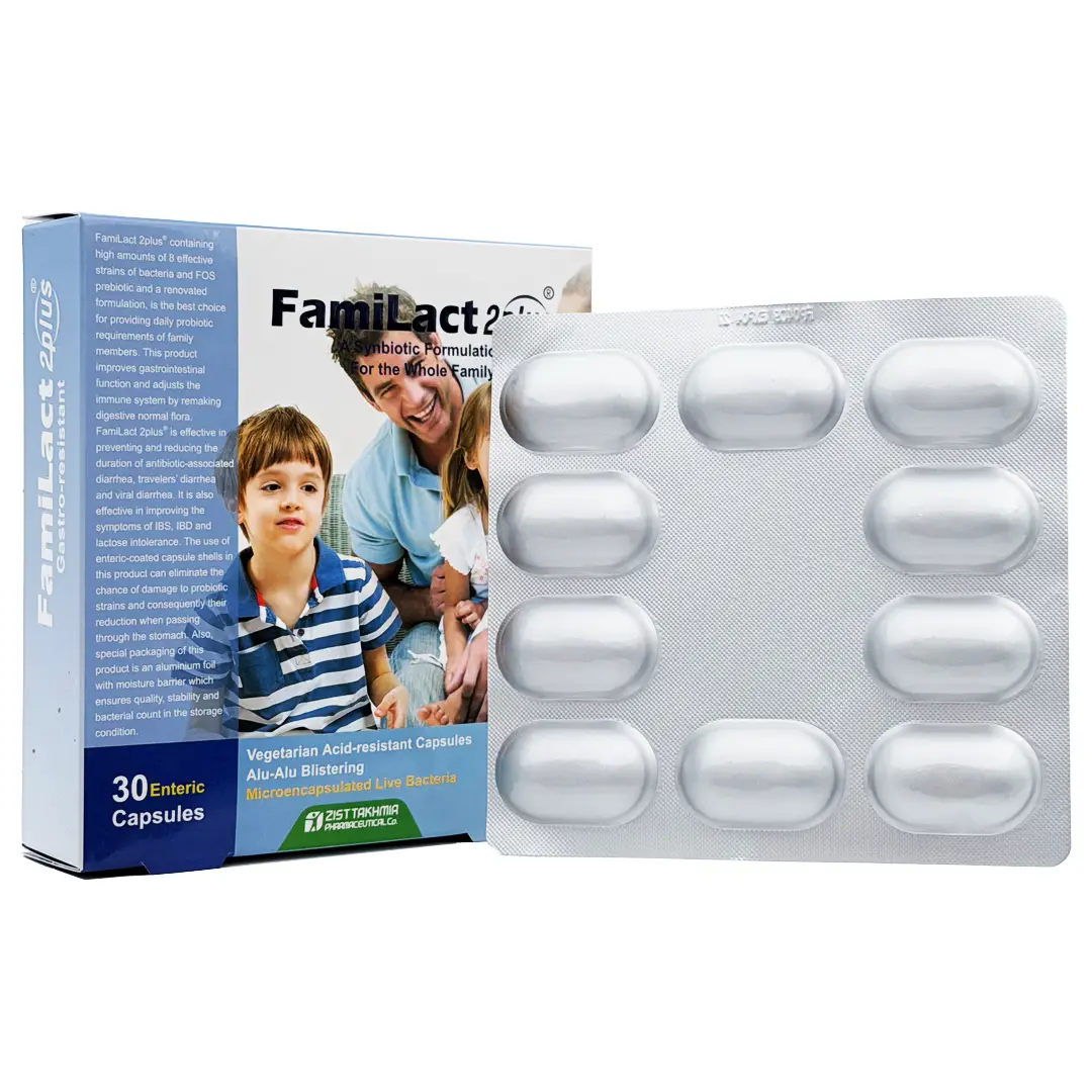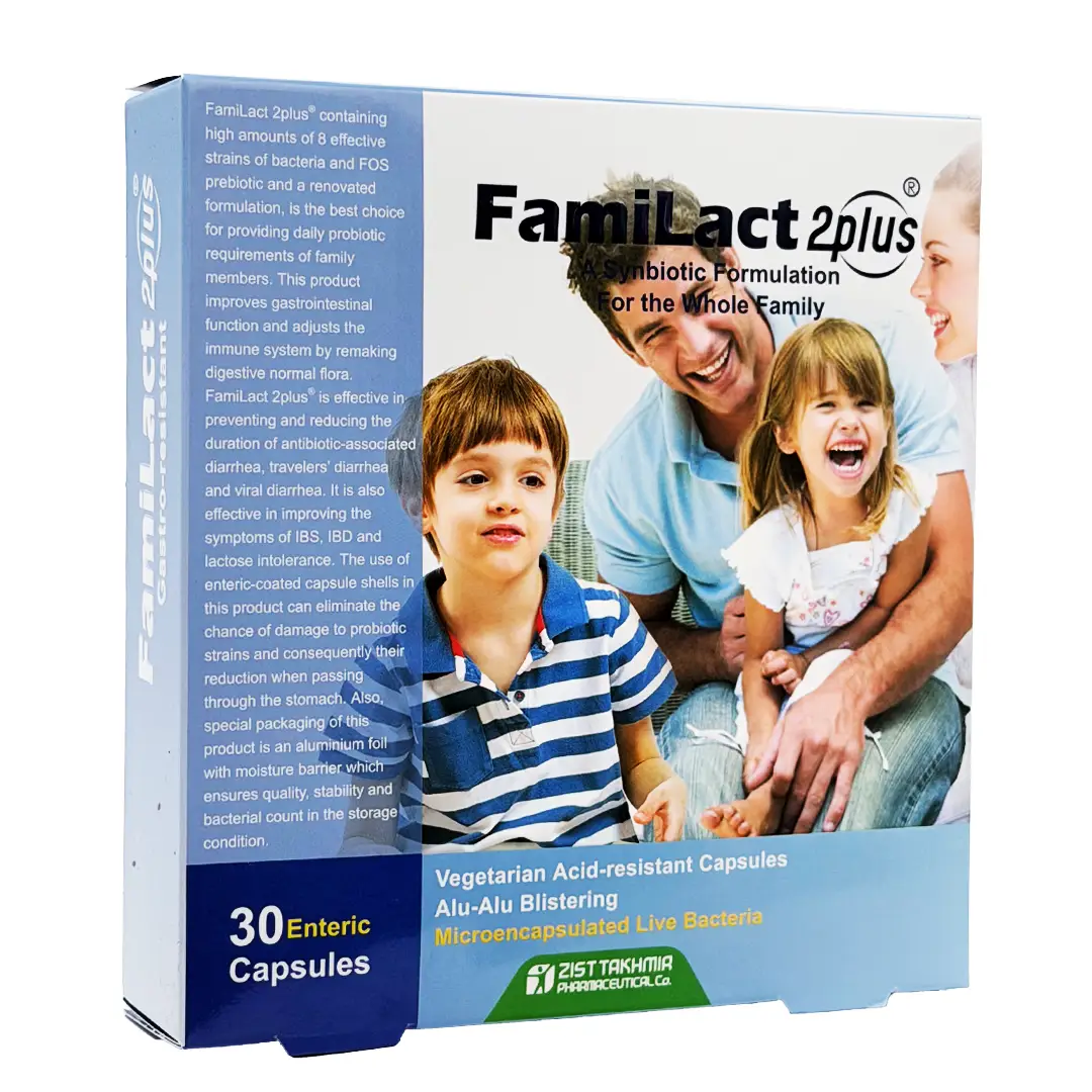 فمی لاکت 2پلاس® حاوی مقادیر بالایی از سویه های موثر باکتریایی و پری بیوتیک اولیگوساکارید با فرمولاسیون پیشرفته، بهترین انتخاب برای تامین نیازهای روزانه پروبیوتیک اعضای خانواده است. این محصول با بازسازی میکروبیوم طبیعی دستگاه گوارش، عملکرد این دستگاه را بهبود می بخشد و سیستم ایمنی را تنظیم می کند. فمی لاکت 2پلاس® در پیشگیری و کاهش طول مدت اسهال مرتبط با آنتی بیوتیک، اسهال مسافرتی و اسهال ویروسی موثر است.
