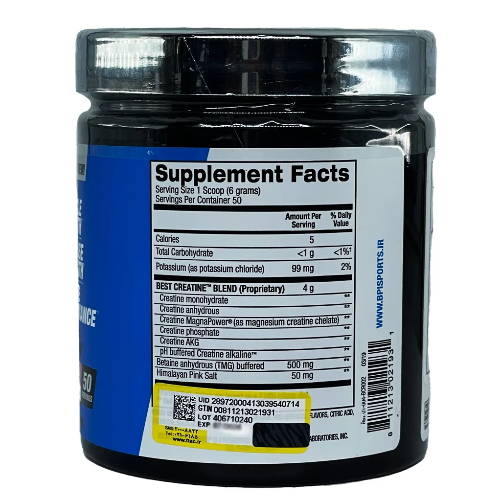بست کراتین BPI یک مکمل تغذیهای حاوی کراتین با فرمولاسیون انحصاری و حاوی 4 گرم کراتین از 6 نوع کراتین مختلف به منظور بهبود جذب و تاثیرگذاری بیشتر می باشد. بست کراتین بی پی ای، موثر در هایپرتروفی عضلانی ورزشکاران و کمک به بهبود توان و استقامت ورزشی موثر است.