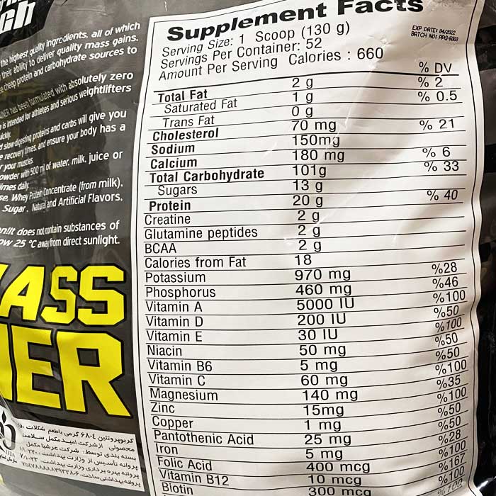 به واسطه وجود ۱۰۱ گرم کربوهیدرات در هر پیمانه، افزایش توده عضلات را محصول مورد نظر می تواند در کمترین زمان انجام دهد.