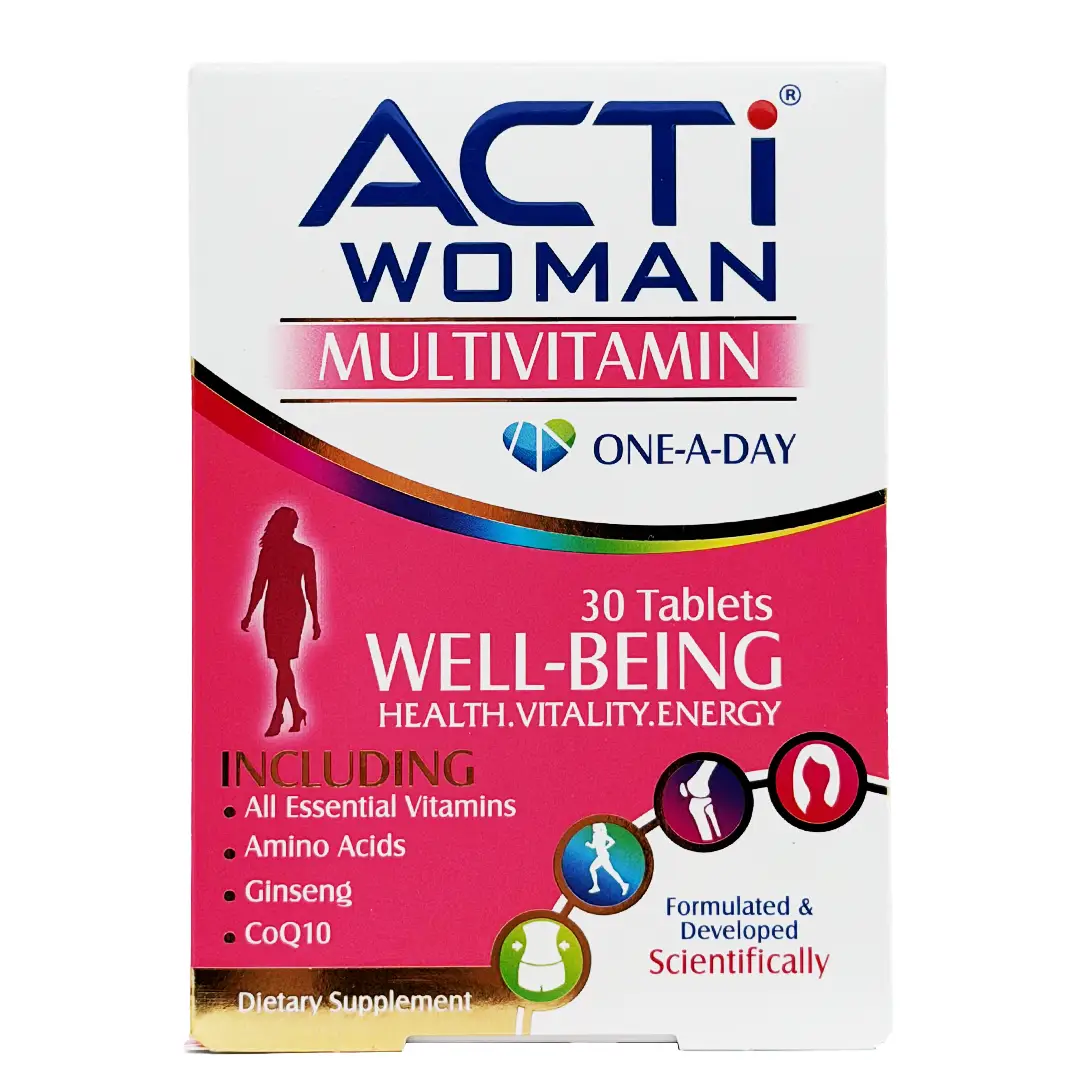 اکتی ومن مولتیویتامین مینرال روزانه مخصوص بانوان است که با ترکیبی از ویتامینها، مواد معدنی، آنتیاکسیدانها و عصاره ترکیبات گیاهی، به حفظ سلامت عمومی و افزایش انرژی کمک میکند. وجود چای سبز و جینسینگ در این مکمل، متابولیسم را تقویت کرده و مانع تجمع چربی در بدن میشود. همچنین اکتی ومن میتواند در تعادل هورمونی، بهبود خلقوخو و کاهش علائم PMS و یائسگی موثر واقع شود.