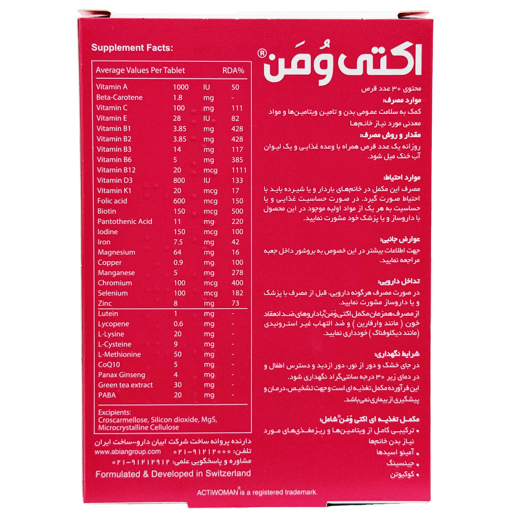 قرص اکتی وومن ابیان دارو - 30 عددی