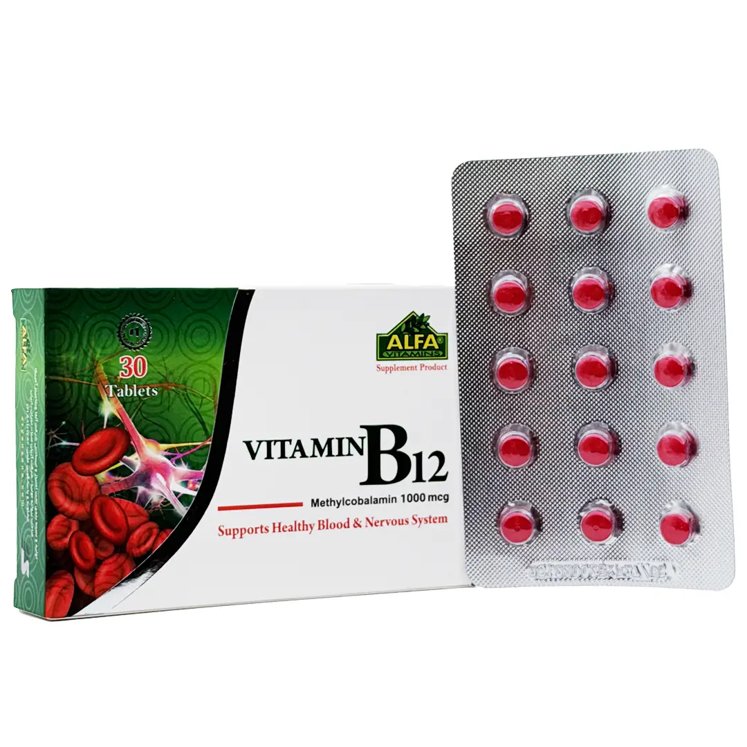 قرص ویتامین ب12 1000 میکروگرم آلفا ویتامینز مناسب برای سالمندان و مبتلایان به سوء جذب ویتامین B12