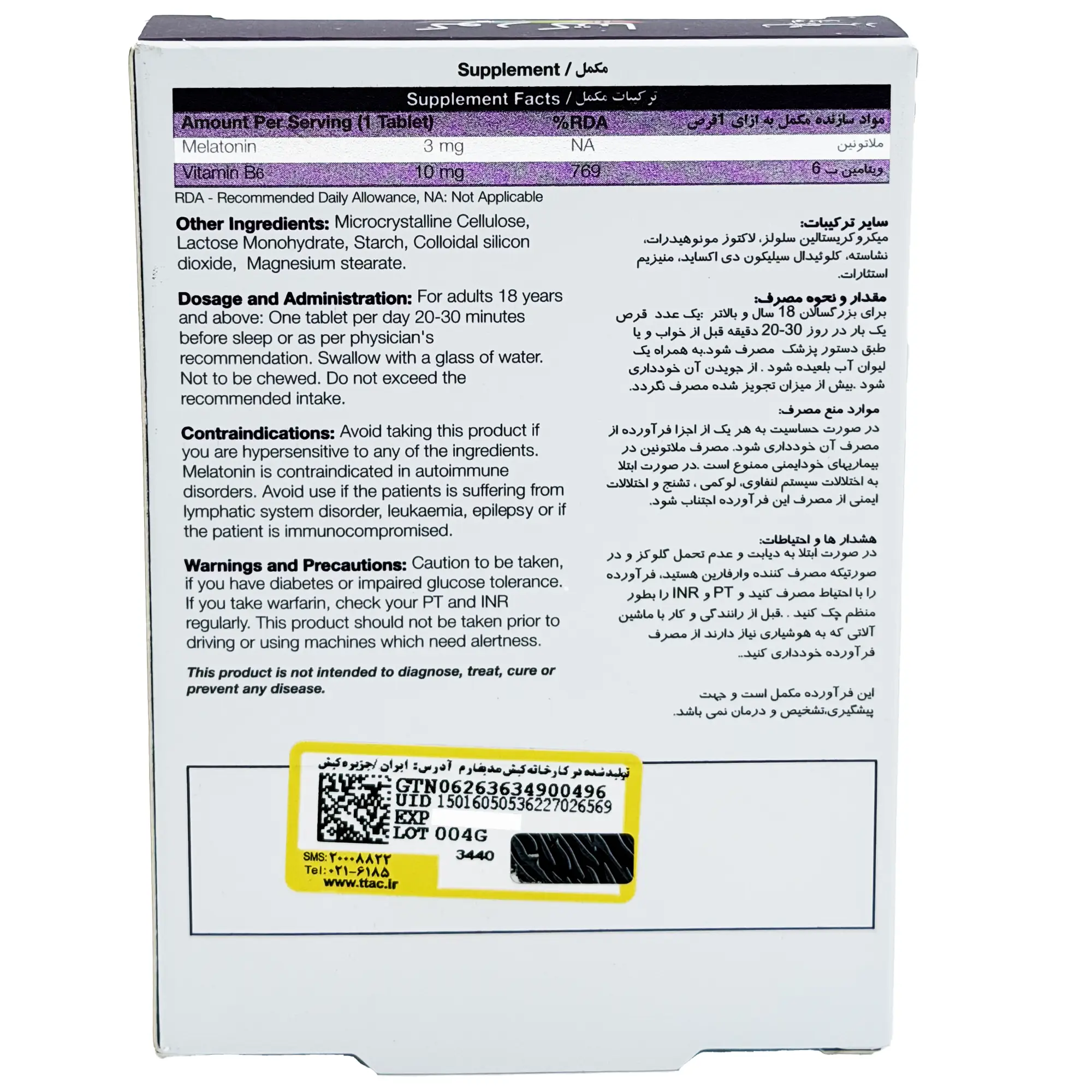 حاوی 3 میلی گرم ملاتونین + ویتامین B6 در هر قرص