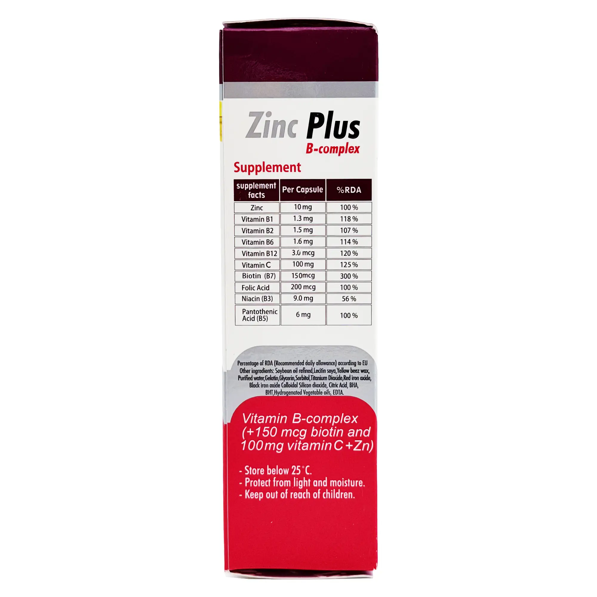کپسول زینک پلاس ب کمپلکس حاوی ویتامین های گروه ب ( ب1 ، ب2 ، ب3 ، ب5 ، ب6 ، ب12 ) ، بیوتین ، اسید فولیک و زینک می باشد. زینک ( روی ) یکی از عناصری است که بعد از آهن فراوانترین عنصر جزئی در بدن به شمار می رود . میزان مناسب روی در عملکرد سیستم ایمنی ، ترمیم زخم ها ، تقویت قوه بویایی ، بینایی ، چشایی ، تقسیم طبیعی سلول ها ، رشد و تکامل در طول بارداری ، کودکی و بلوغ نقش دارد . روی به عنوان یکی از مهم ترین مواد معدنی در سلامت پوست فرم گرفتن و استحکام ناخن ها و تقویت ساختار مو نیز نقش بسیار مهمی ایفا می کند . ویتامین های گروه B یکی از مهم ترین گروه ویتامین های موثر در سلامت پوست ، مو و ناخن به شمار می روند همچنین ویتامین های گروه B در سلامت سیستم عصبی و روانی ، جلوگیری از اختلالات حواس و افسردگی تاثیر بسزایی دارند .