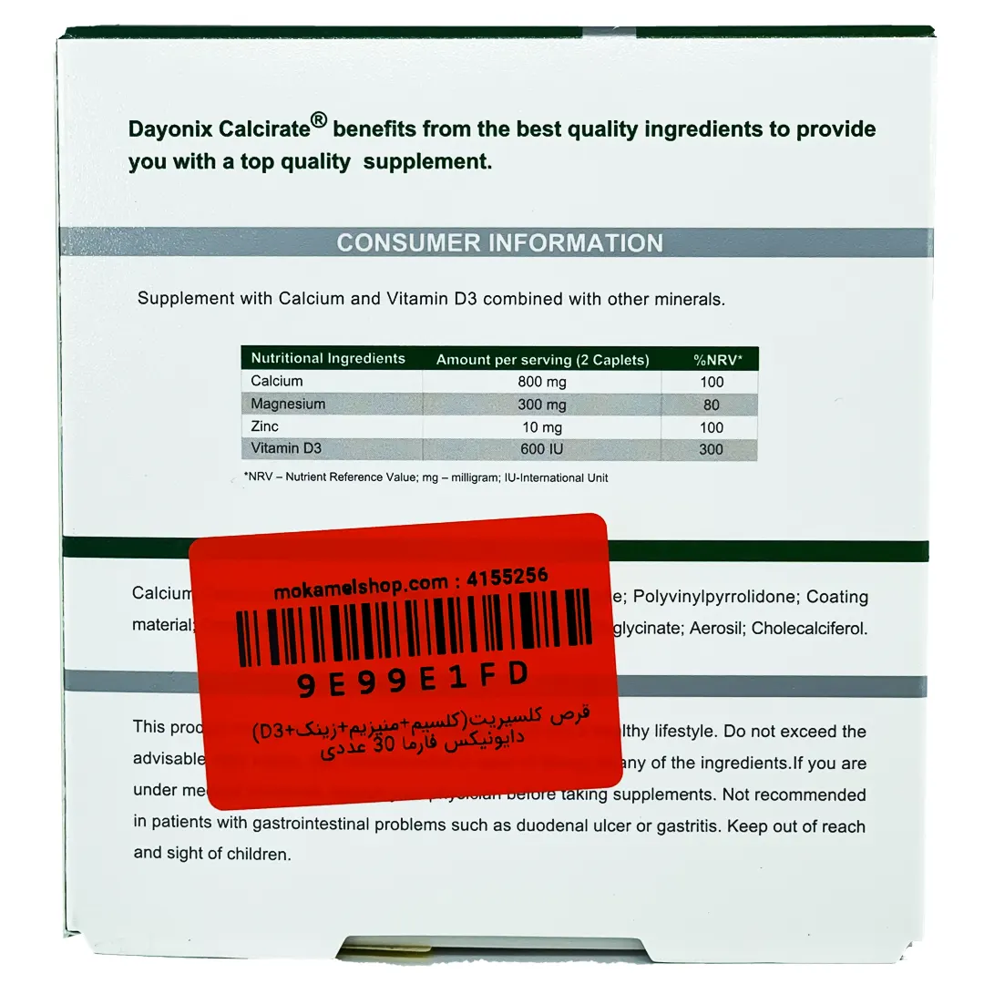 قرص کلسیریت(کلسیم+منیزیم+زینک+D3) دایونیکس فارما 30 عددی