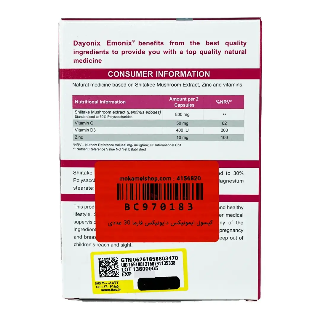 کپسول امونیکس (قارچ شیتاکه) دایونیکس فارما - 30 عددی