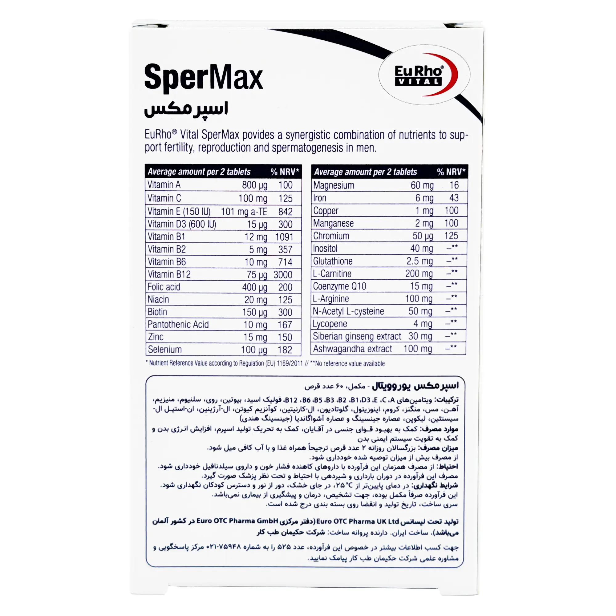 قرص اسپرمکس یوروویتال - 60 عددی