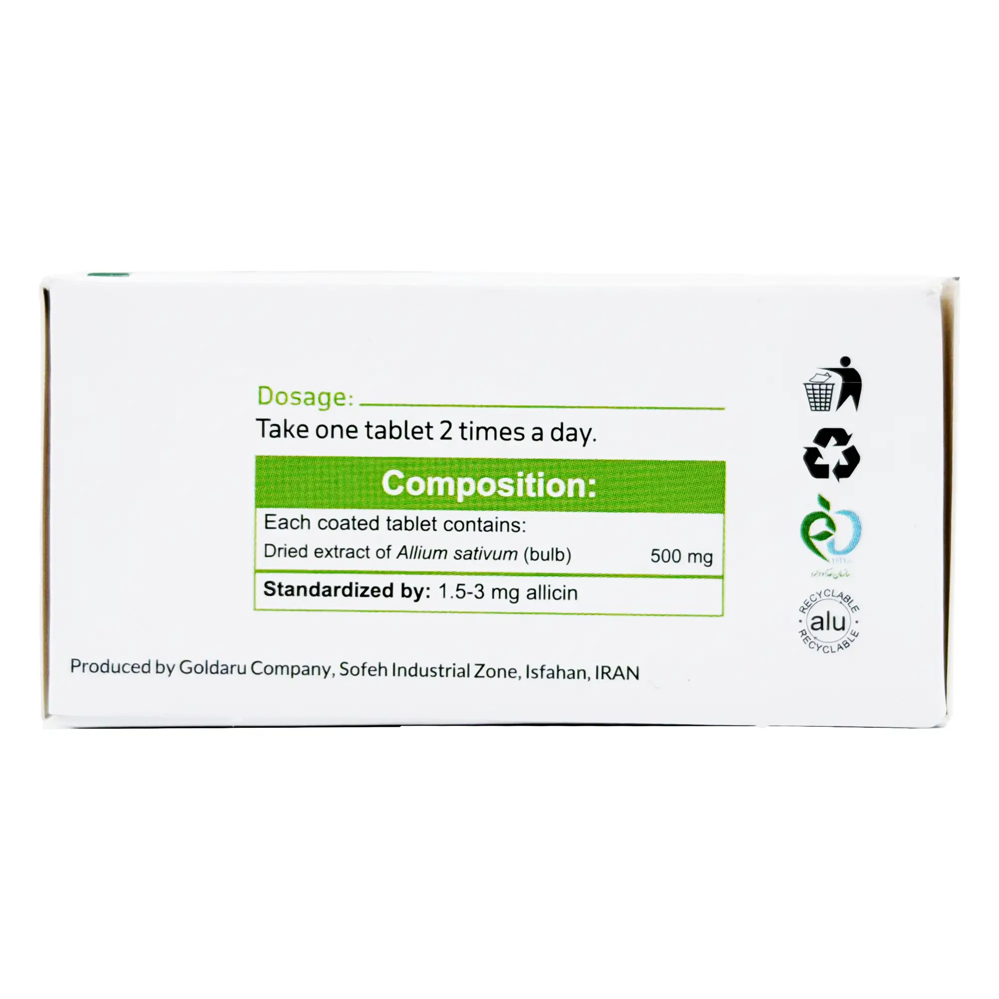 حاوی 500 میلی گرم پودر سیر در هر قرص