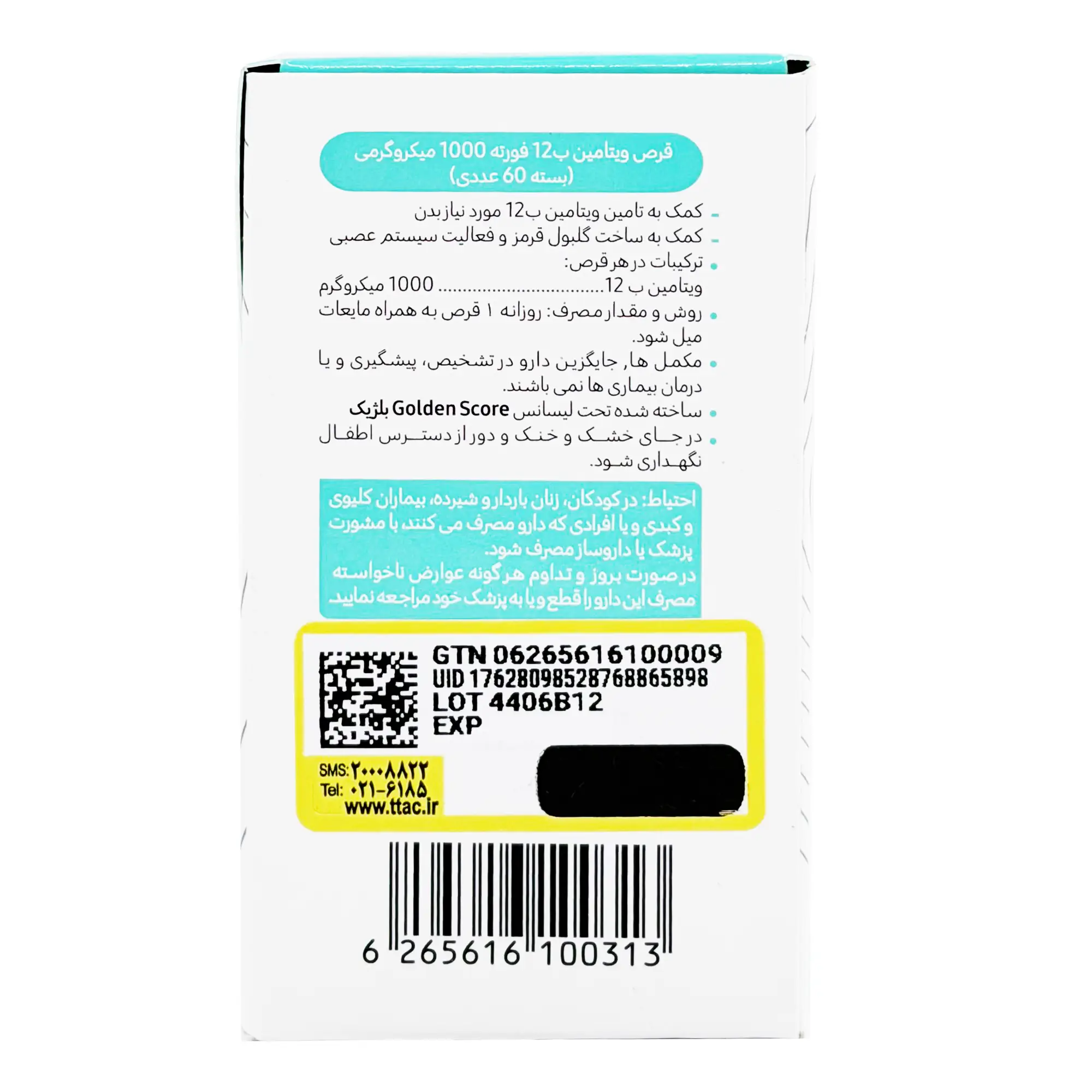 قرص ویتامین ب 12 فورته گلدن اسکور - 60 عددی
