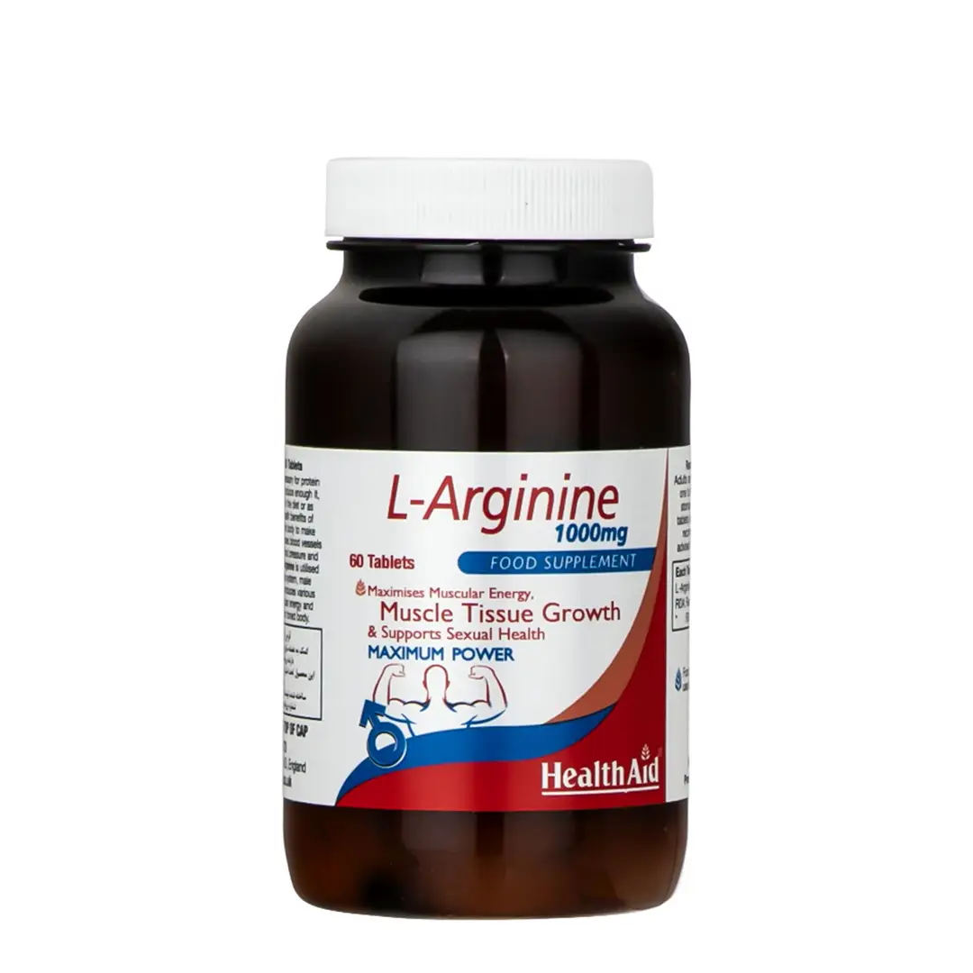 آرژنین در گروه اسیدهای آمینه نیمه ضروری قرار می گیرد و عملکردهای بسیار متفاوتی در بدن دارد که شامل ترشح هورمون ها، افزایش تولید هورمون رشد، بهبود زخم ها، دفع سموم تولید شده در بدن و تقویت سیستم دفاعی بدن می باشد. آرژنین از دسته عناصری است که بدن قادر به تولید آن نمی باشد و باید این ماده ارزشمند را میزان لازم از طریق رژیم غذایی و یا مصرف مکمل ها دریافت نمایید. مکمل ال-آرژنین 1000 میلی گرمی هلث اید حاوی 30 عدد قرص می باشد که در ترکیبات هر قرص، 1000 میلی گرم آل آرژنین وجود دارد. مکمل های حاوی آرژنین توانایی تولید نیتریک اکسید را دارد. نیتریک اکسید سبب گشادی عروق شده و این امر خون رسانی به اندام هایی را که در جریان فعالیت ورزشی درگیر هستند، تسهیل نموده و در نتیجه می تواند کارایی ورزشکار را به ویژه در فعالیت های هوازی افزایش دهد. همچنین این آمینو اسید قادر به پاکسازی رادیکال های آزاد از خون، بهبود عملکرد سیگنال های سلول های عضلانی، رهاسازی هورمون رشد، حمایت از کلسترول خوب و تنظیم متابولیسم چربی در بدن خواهد شد.