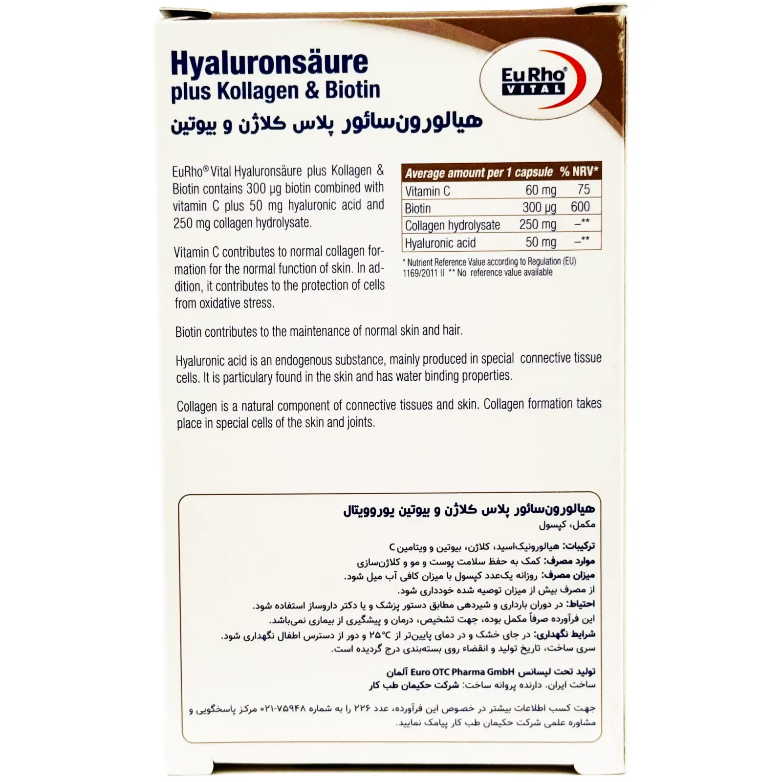 کپسول هیالورون سائور پلاس کلاژن و بیوتین یوروویتال - 30 عددی