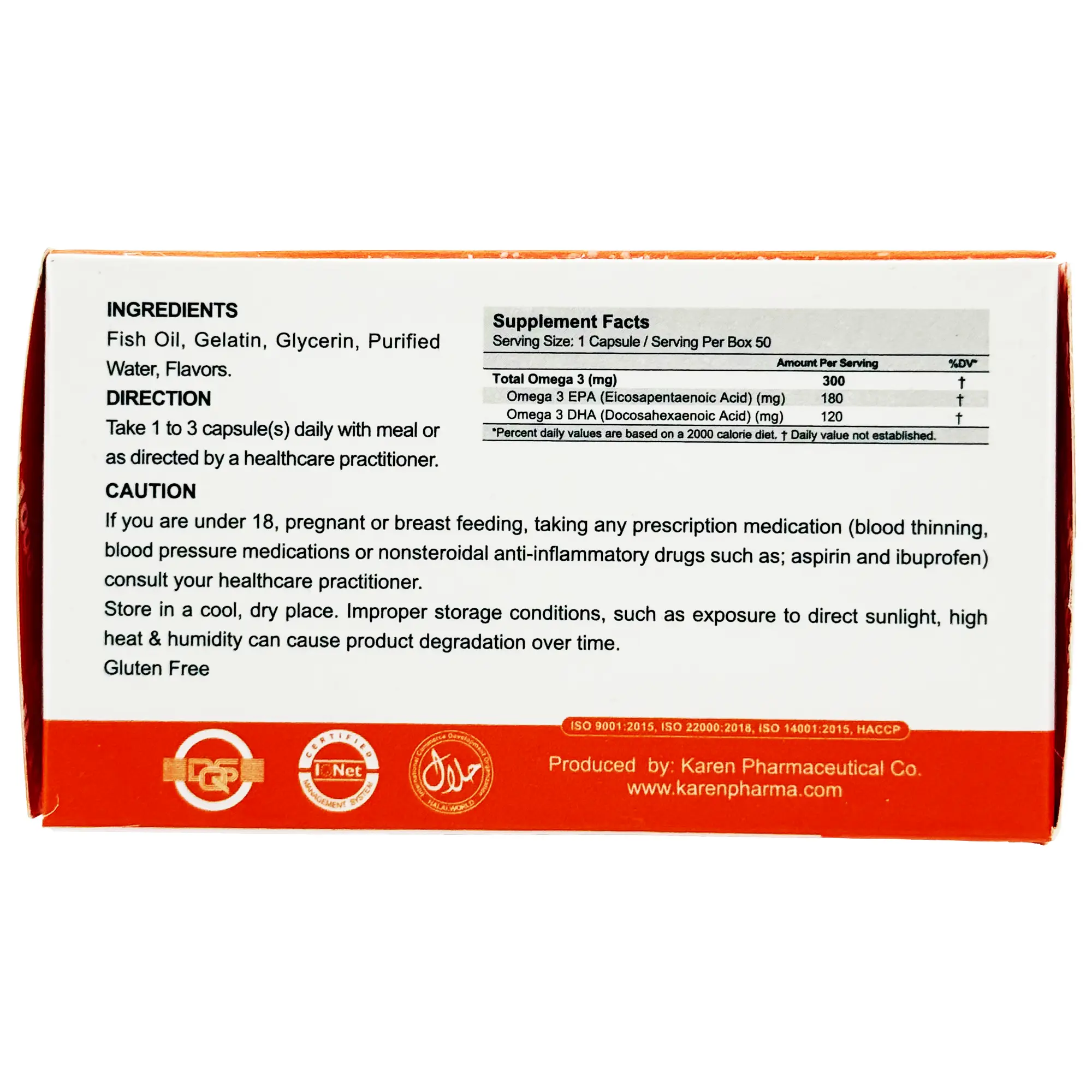 کپسول امگا 3 کارن حاوی روغن ماهی که منبع سرشاری از اسیدهای چرب بلند زنجیره غیراشباع امگا 3 مانند DHA و EPA است، است. مصرف این کپسول باعث حفظ سلامت قلب و عروق، استخوان و مفاصل، مغز و سیستم عصبی و… میشود.