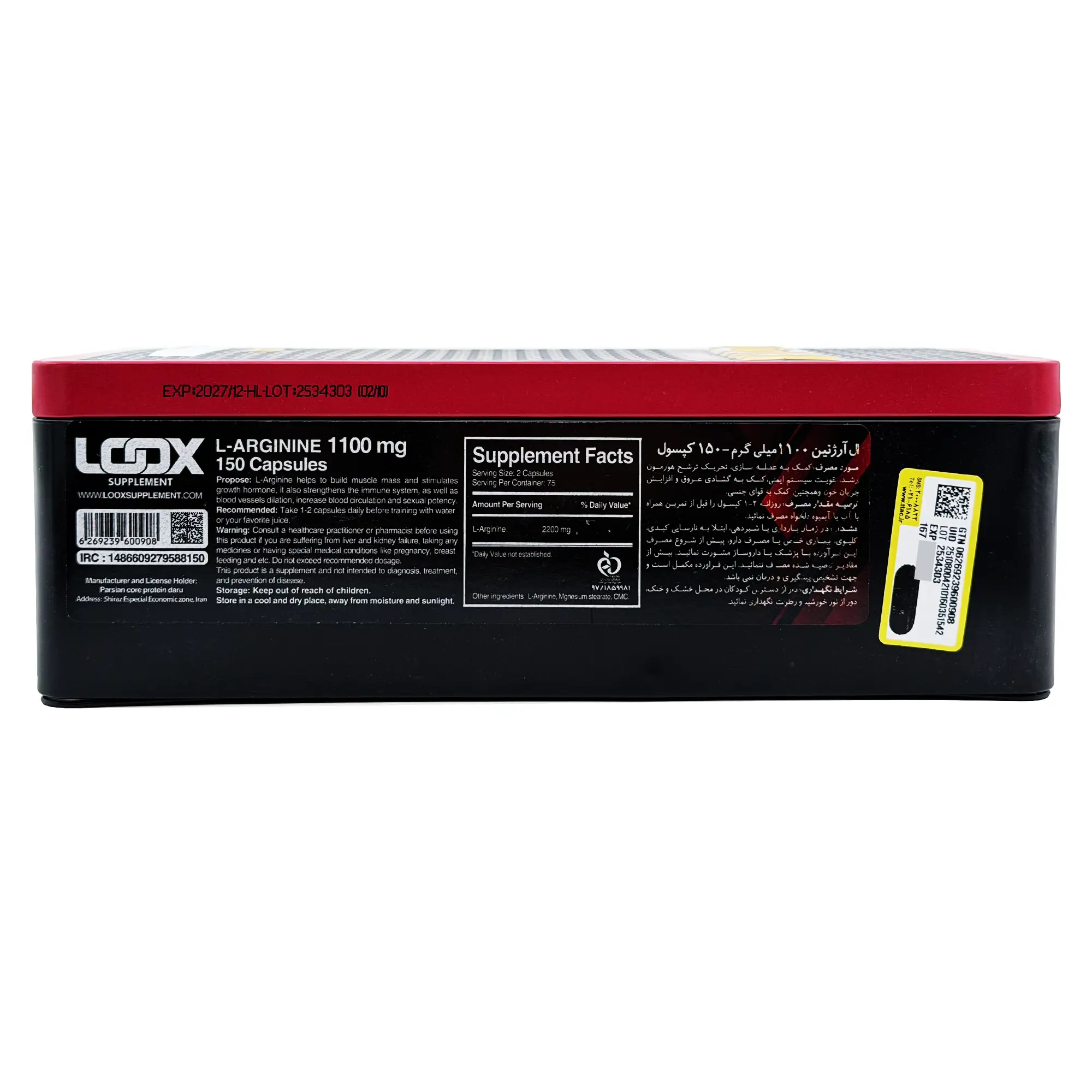 حاوی 1100 میلی گرم آرژنین در هر کپسول