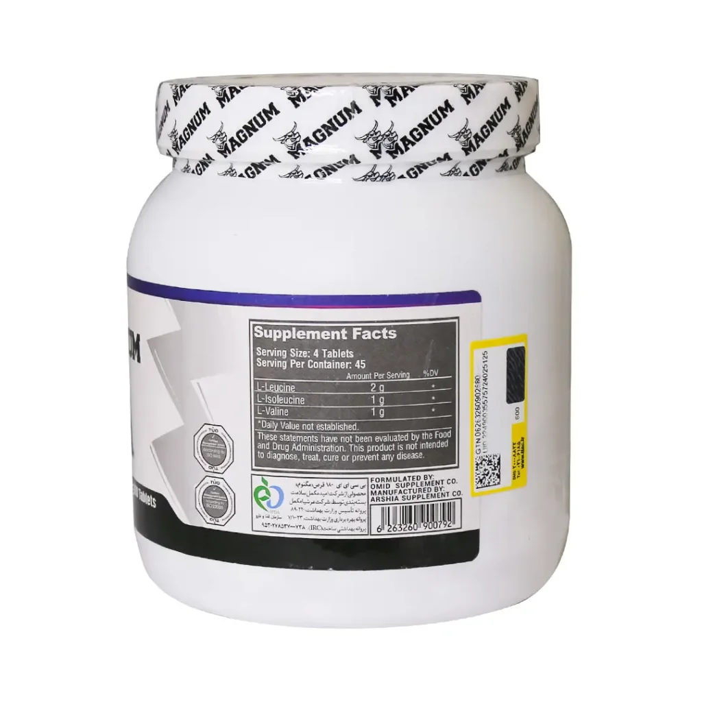 مکمل قرص BCAA مگنوم حاوی ۳ آمینو اسید ضروری و شاخه دار یعنی والین، ایزولوسین و لوسین بوده که برای ترمیم عضلات و همچنین در دوره ریکاوری می تواند به کار گرفته شود. این مکمل سنتز پروتئین را نیز افزایش می دهد. با توجه به بکارگیری نسبت 2:1:1 توسط مگنوم، این محصول می تواند از کیفیت و عملکرد قابل قبولی برخوردار باشد. یادآور می شویم این آمینو اسیدها عملکرد مغز را نیز بهبود می دهند.