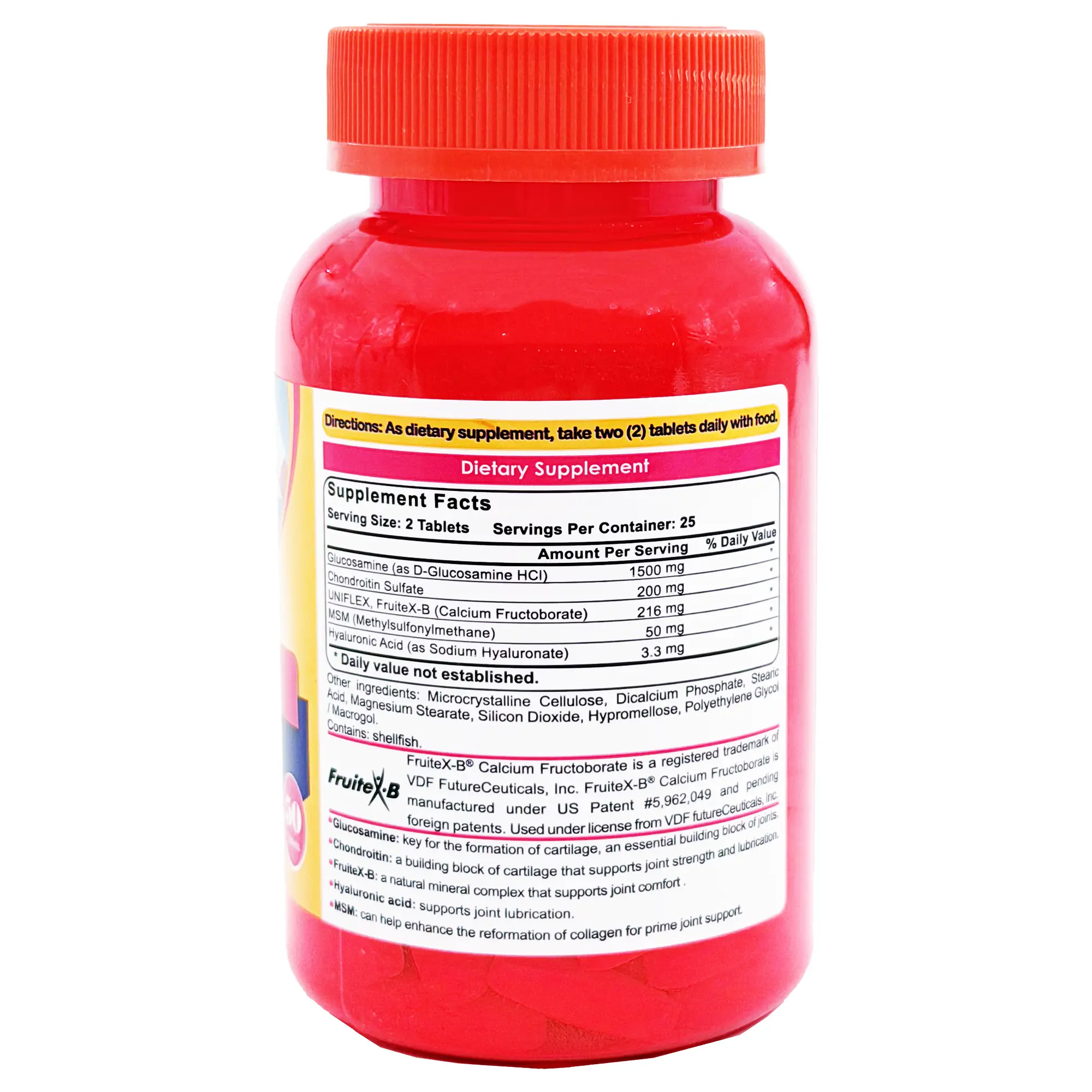 حاوی گلوکزامین، کندروئیتین سولفات، متیل سولفونیل متان، هیالورونیک اسید و کلسیم فروکتوبورات