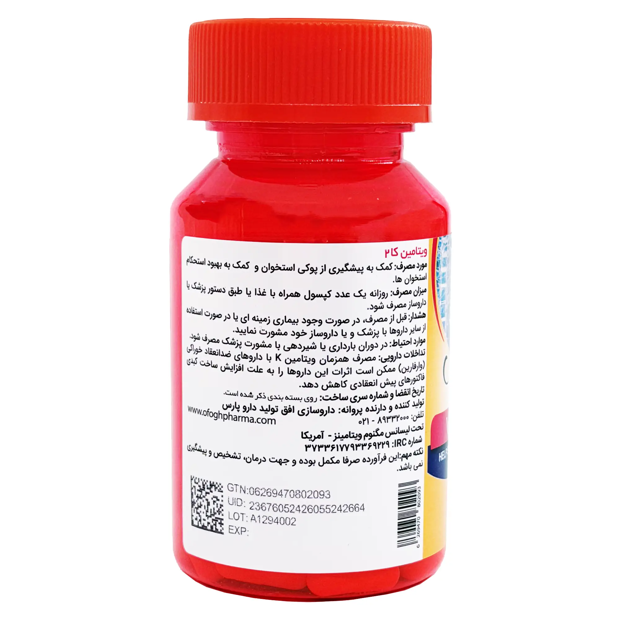 حاوی 100 میلی گرم ویتامین کا 2