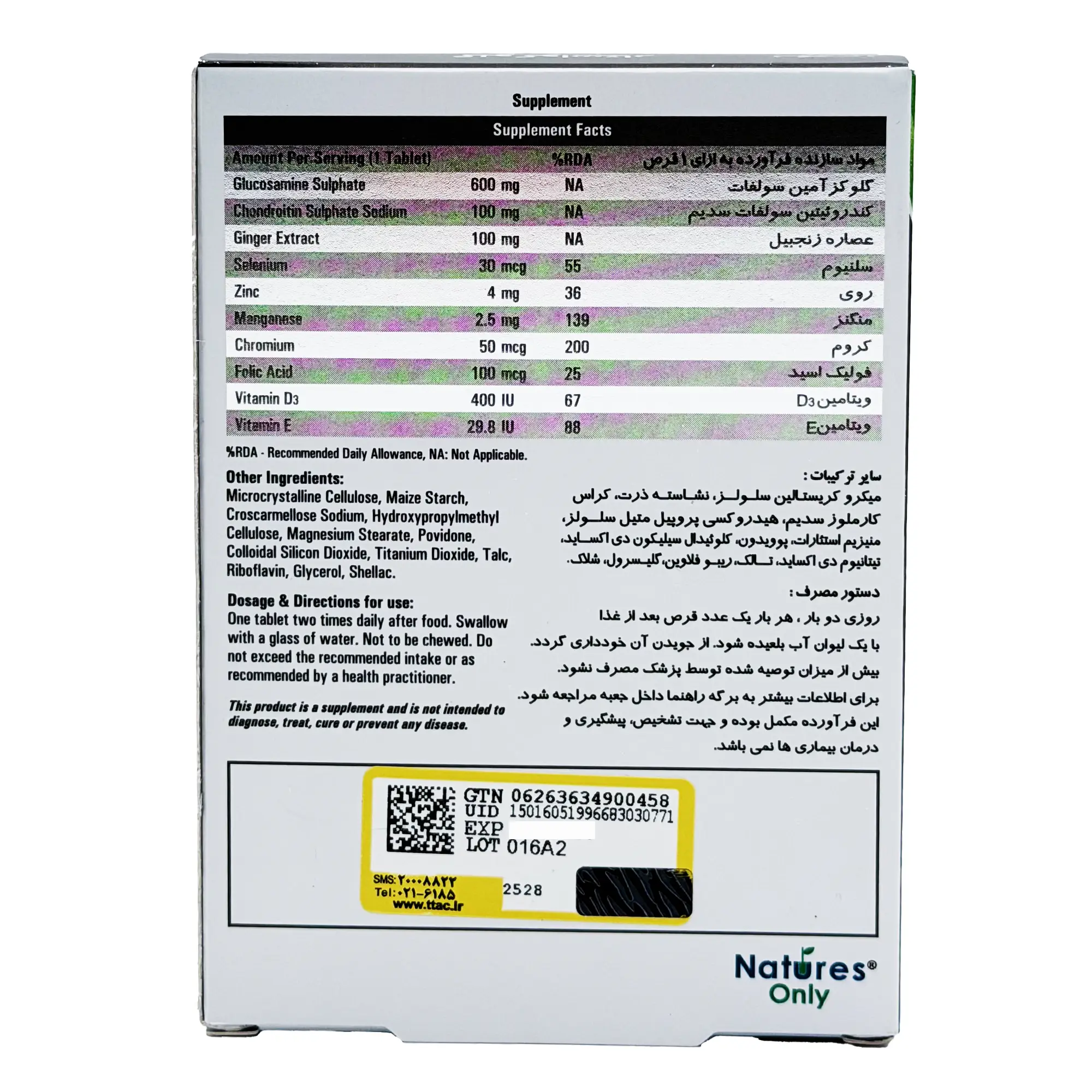 glucostar، دارای خواص ضدالتهابی و کمک به کاهش التهاب و تورم مفاصل به واسطه داشتن گلوکزآمین، کندرویتین و زنجیبل