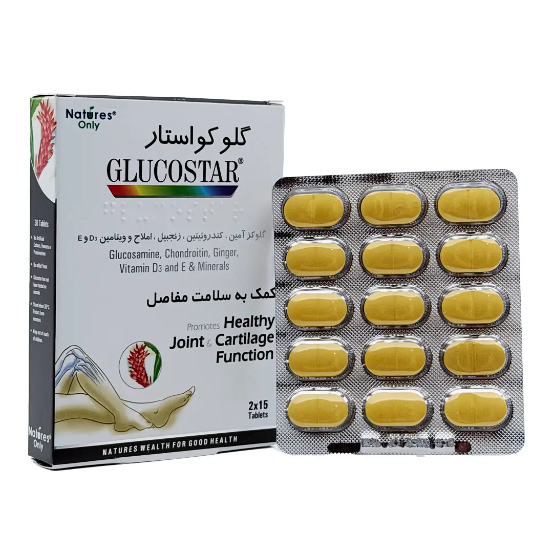 سلامت مفاصل برای نشاط و تندرستی طولانی مدت مهم است. گلوکواستار با تامین مواد مغذی برای مفاصل، مناسب برای کسانی است که تحرک بالایی دارند. گلوکواستار حاوی عناصر طبیعی مانند فرم کریستالی سولفات گلوكوزامین، عصاره زنجبیل ، كندرویتین و سایر ویتامین ها و مواد معدنی ضروری است ، كه به ارتقا سلامت و جلوگیری از تخریب غضروف ها كمك می كند.