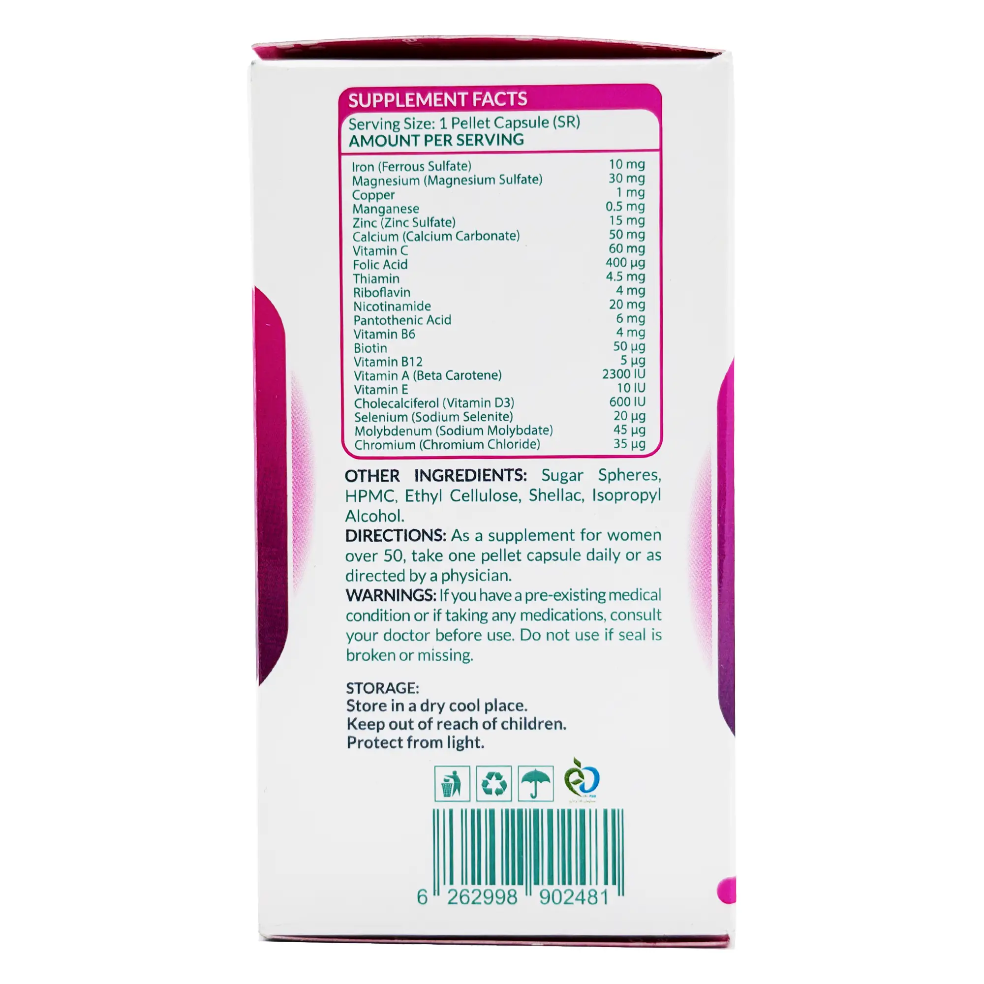 حاوی مولتی ویتامین ها و مینرال های متناسب با نیازهای خانم های بالای 50 سال