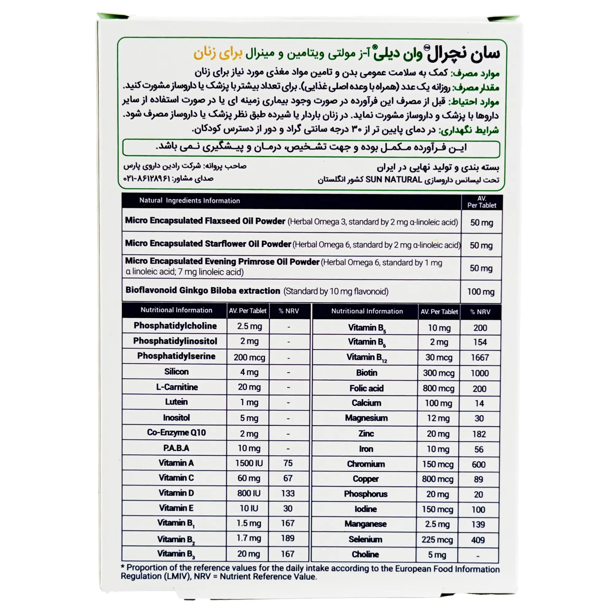 قرص مولتی ویتامین و مینرال وان دیلی بانوان سان نچرال - 30 عددی