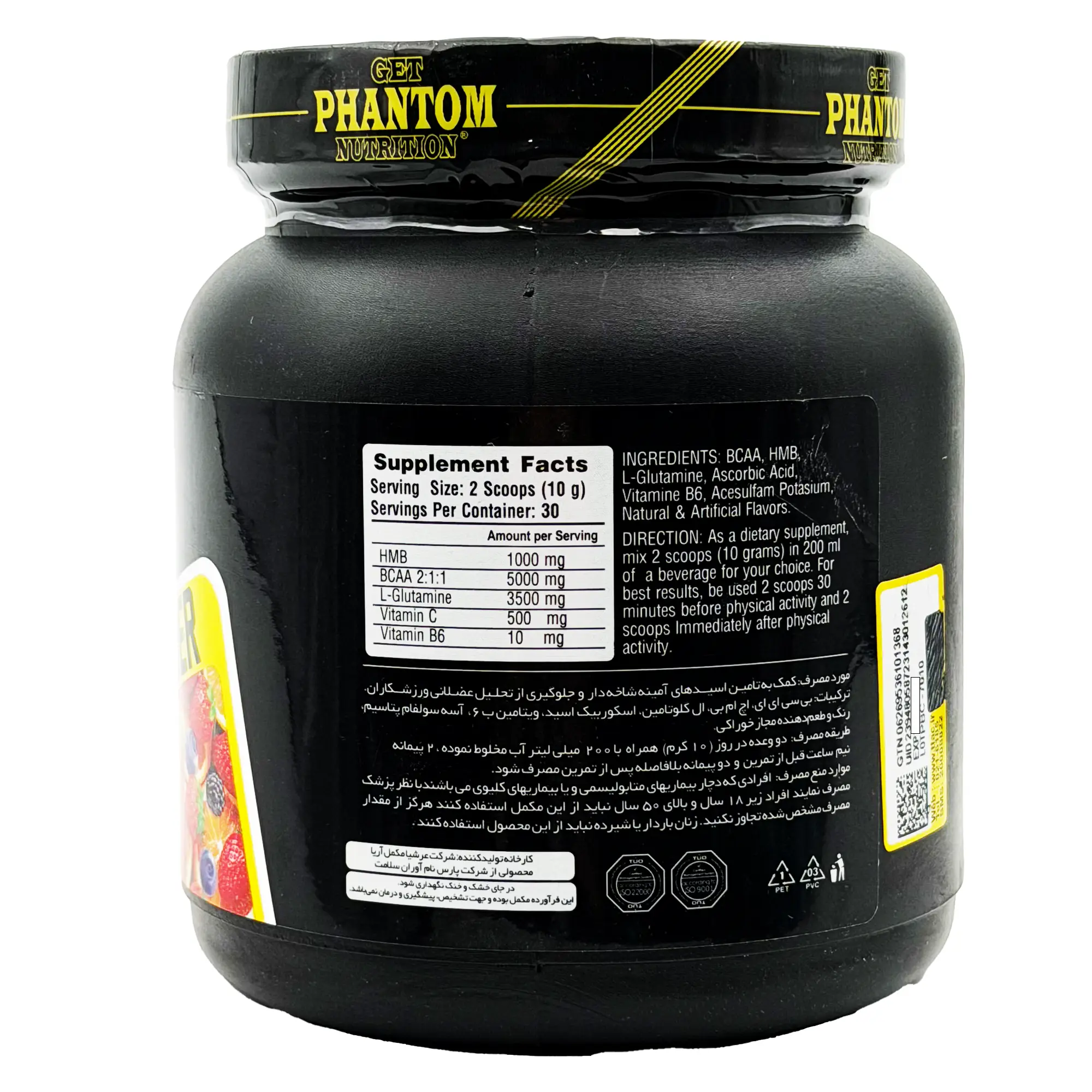 مکمل پودر BCAA فانتوم نوتریشن حاوی BCAA، ال گلوتامین، ویتامین C یا اسکوربیک اسید، hmb و ویتامین B6 است. با توجه به این ترکیبات، محصول ارائه شده توسط مگنوم فارما مورد استقبال ورزشکاران قرار دارد. مصرف این مکمل کمک می کند تا بافت های آسیب دیده عضلات پس از انجام تمرینات سنگین بهبود یابند. علاوه بر این روند ریکاوری عضلات نیز با مصرف این مکمل بهبود خواهد یافت.