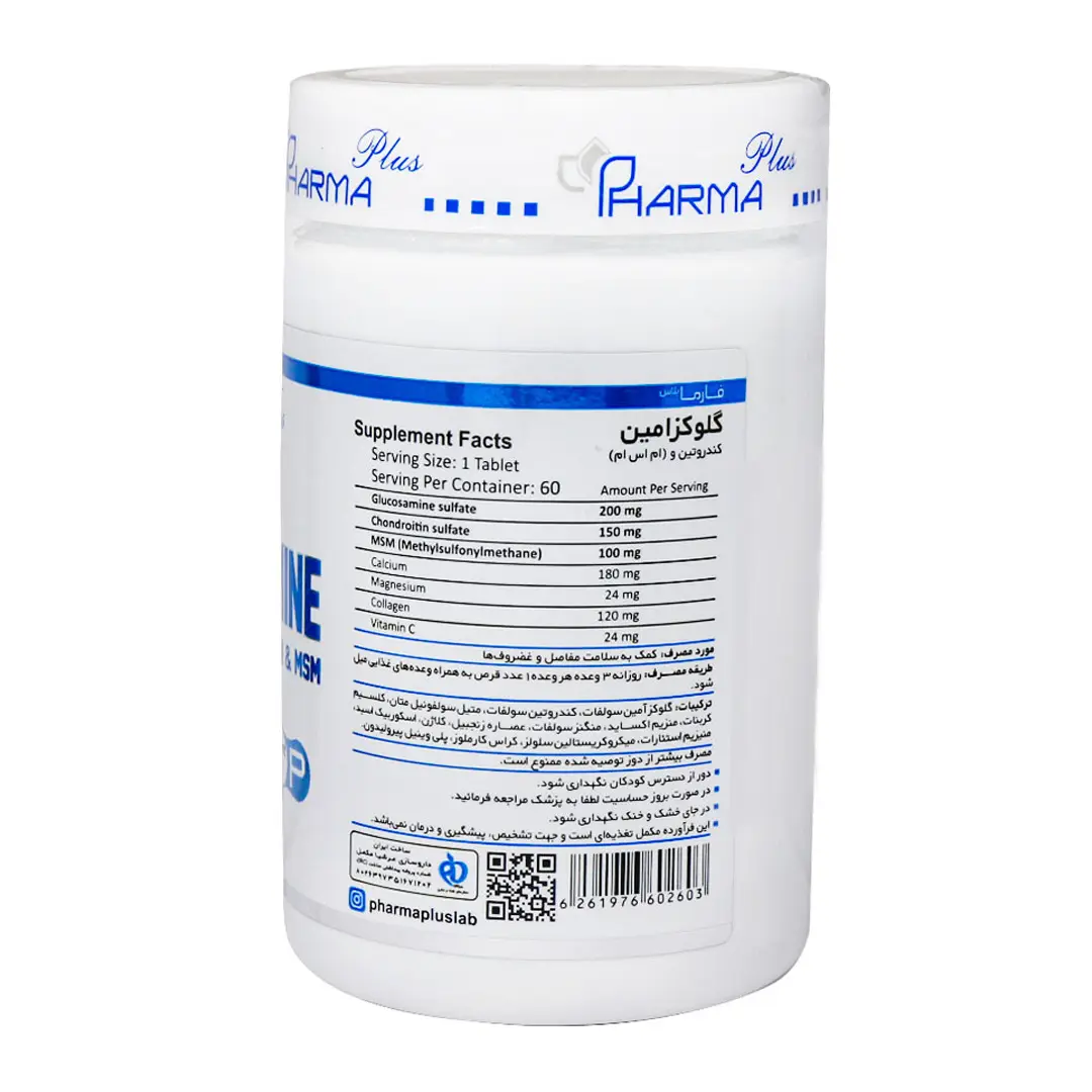 قرص گلوکزامین کندروتین و ام اس ام فارما پلاس محصولی برای جلوگیری، کاهش دردهای مفصلی و ترمیم کننده غضروفها و استخوانهای آسیب دیده است که میتوان از این محصول به عنوان یکی از بهترین محصولات غضروف ساز نام برد. یکی از بیماریهای شایع که با افزایش سن به وقوع میپیوندد، استئوآرتریت یا ساییدگی مفاصل است که در آن غضروف موجود بین مفاصل به مرور از بین میرود؛ به همین دلیل افراد مبتلا به این بیماری به سختی قادر به تکان دادن مفاصل خود هستند و هنگام حرکت درد شدیدی را احساس میکنند. گلوکزامین به کاهش سفتی و تورم در مفاصل، کاهش درد در قسمت لگن افراد مسن یا ورزشکاران آسیب دیده کمک میکند که از مهمترین فواید این ماده است. حتی ورزشکاران برای پیشگیری از ساییدگی مفاصل ناشی از ورزشهای سنگین میتوانند از این دارو استفاده کنند.