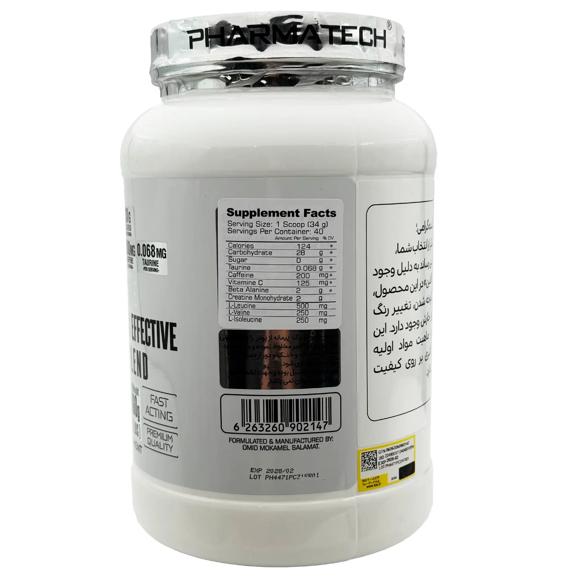 حاوی کراتین،بی سی ای ای، کربوهیدرات، کافئین و تائورین