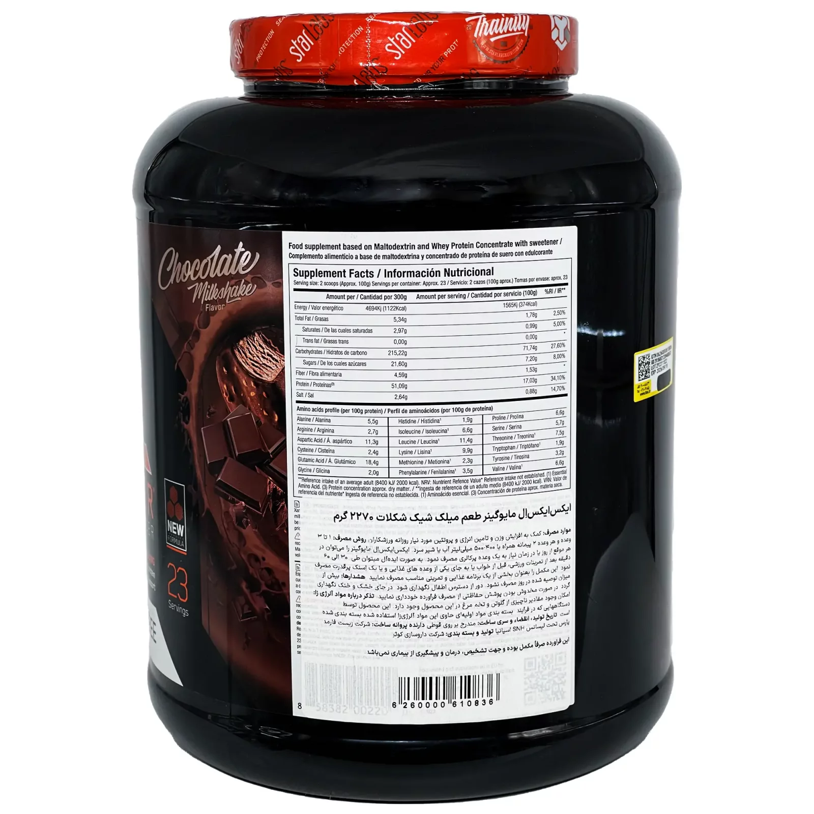 مایو گینر ایکس ایکس ال استارلبز برای ورزشکاران حرفهای که به مواد مغذی آنابولیک بیشتری نسبت به افراد عادی نیاز دارند، طراحی شده است. هر وعده Myogainer مخلوط با آب، حاوی 374 کالری به همراه 17 گرم پروتئین عضلهساز است تا سوخت لازم برای رشد حداکثری عضلات و ریکاوری سریع را فراهم کند. XXL MYOGAINER™ کالری، پروتئین، طعم و مزه بیشتر و قند کمتری به شما میدهد! این همان چیزی است که باید در گینر خود به دنبال آن باشید.