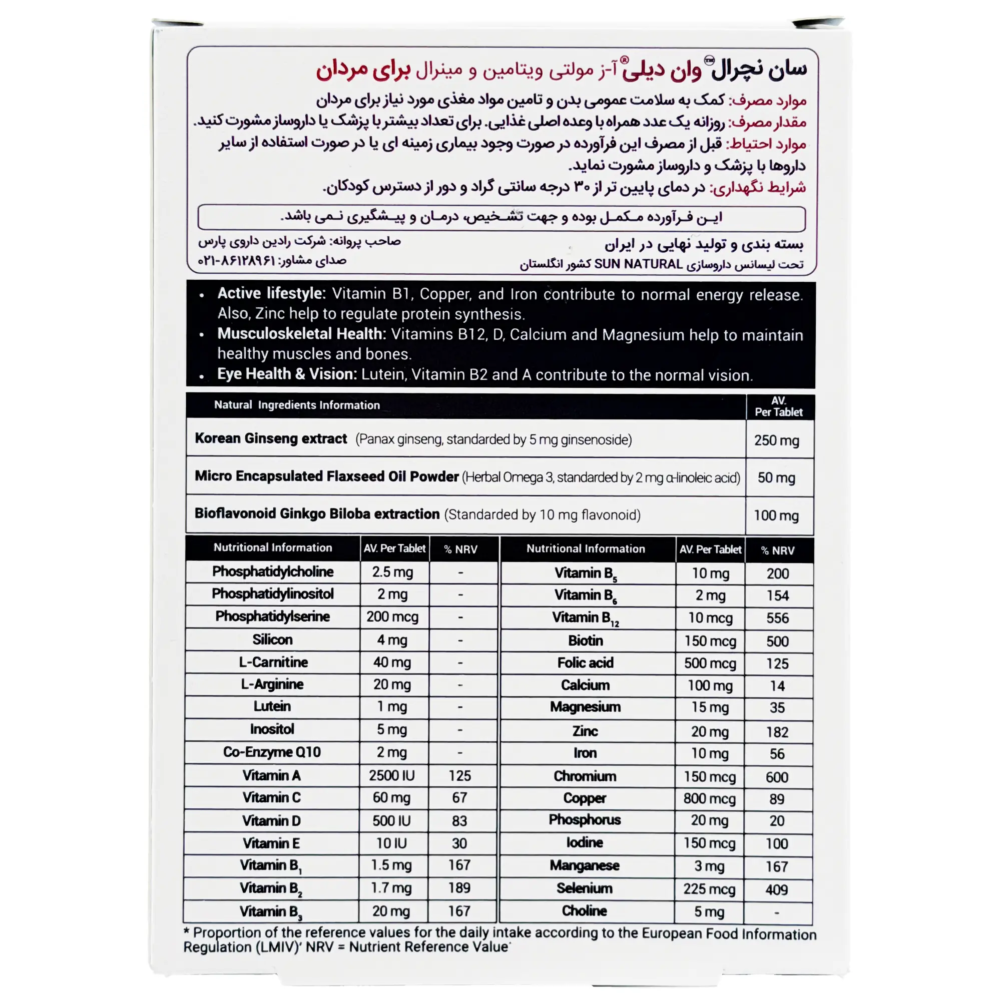 قرص مولتی ویتامین و مینرال وان دیلی آقایان سان نچرال - 30 عددی