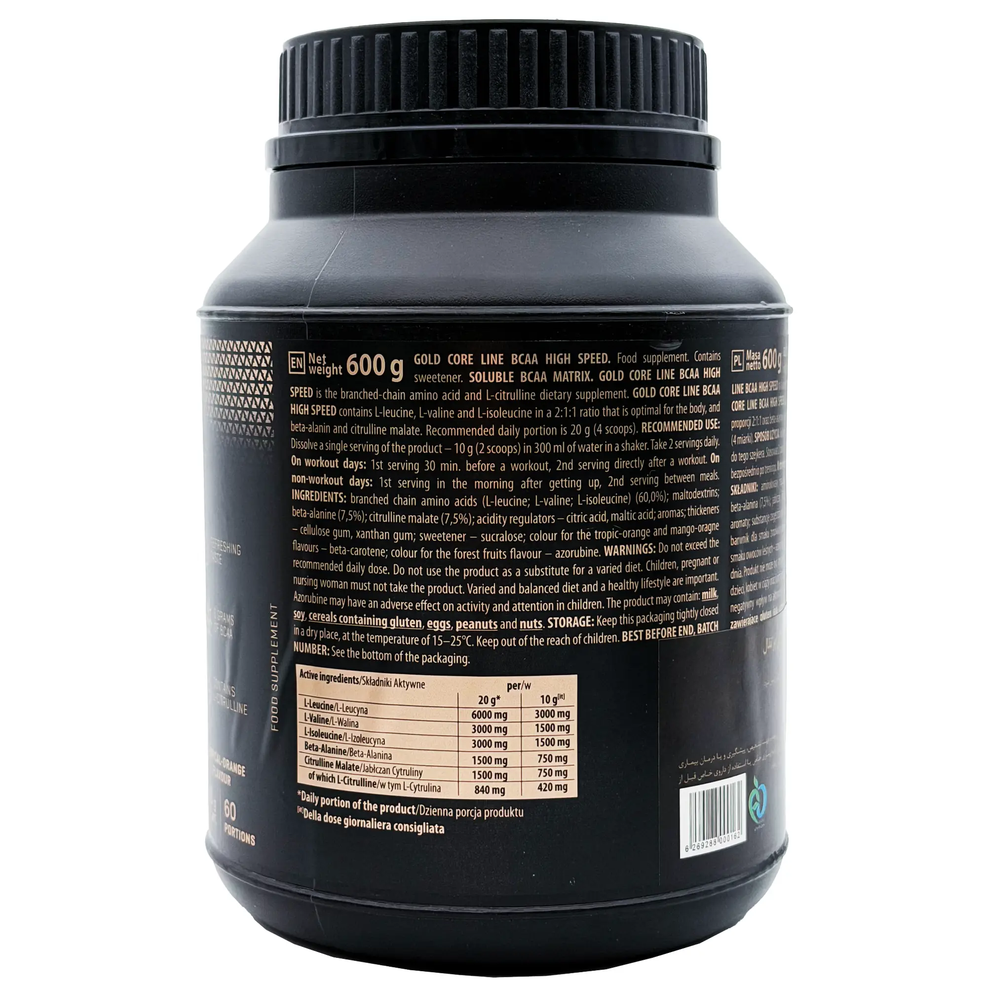 - گلوتامین: ترکیب گلوتامین با BCAA High Speed ترک نوتریشن میتواند ریکاوری را بهبود و از تحلیل عضلات پس از تمرینات سنگین جلوگیری کند.