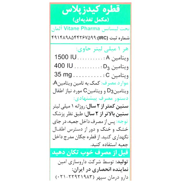 روش مصرف قطره کیدز پلاس ویتان :