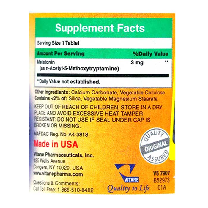 قرص های ملاتونین Vitane Nature’s مزیت ملاتونین را فراهم می کند.
