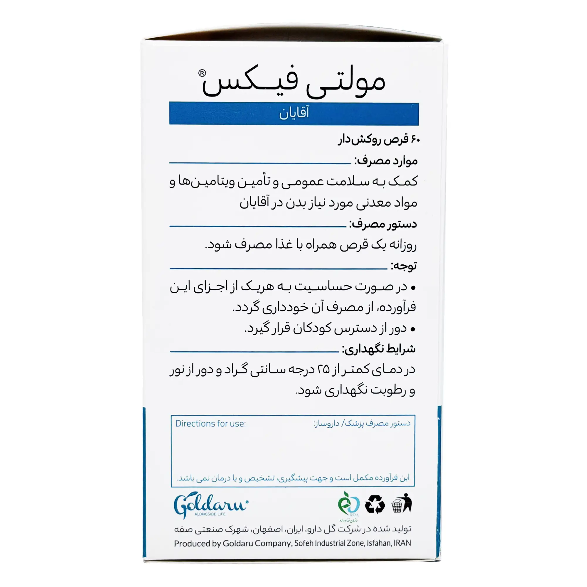 بهترین زمان مصرف قرص مولتی فیکس آقایان روزانه یک عدد همراه غذا می باشد.