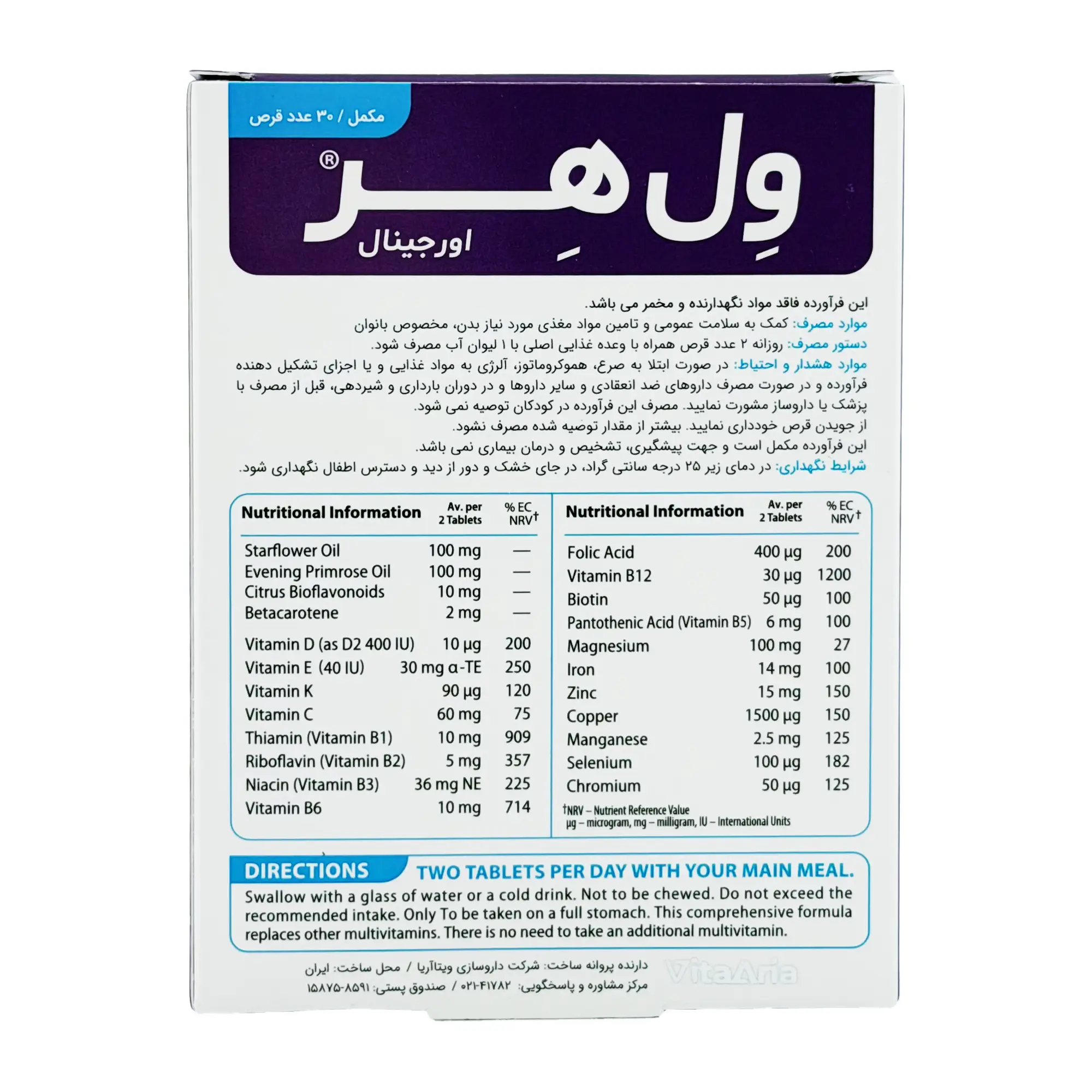 ول هر، مولتیویتامین تخصصی بانوان دارای طیف وسیعی از ویتامینها و مواد معدنی