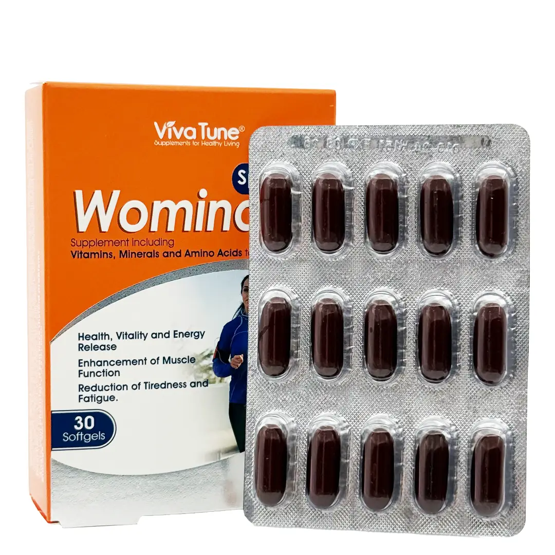 سافت ژل مولتی ویتامین ورزشی وومیناویت اسپرت برند ویواتیون بعنوان یک مکمل تخصصی برای خانم های ورزشکار می تواند با تامین تمامی ویتامین ها و مواد معدنی مورد نیاز بانوان ورزشکار در جهت حفظ و تامین انرژی و ارتقا کارایی عضلات نقش بسیار مفیدی را ایفا کند.