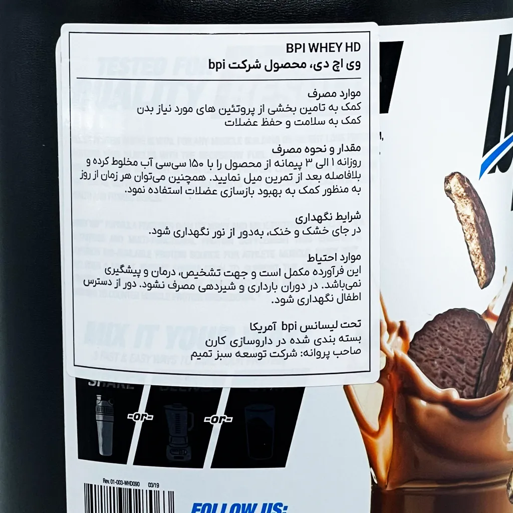 پودر پروتئین وی اچ دی بی پی آی 777 گرم آمریکا حاوی ترکیبی از وی کنسانتره و وی ایزوله می باشد. پروتئین وی BPI تامین کننده پروتئین مورد نیاز عضلات شما، کمک به ساخت عضلات با کیفیت و بدون چربی،جلوگیری از تخریب عضلات، کمک به حفظ تناسب اندام و همچنین موثر در ریکاوری عضلات پس از تمرین می باشد. وی bpi حاوی 25 گرم پروتئین و حاوی 5 گرم BCAA در هر اسکوپ می باشد.